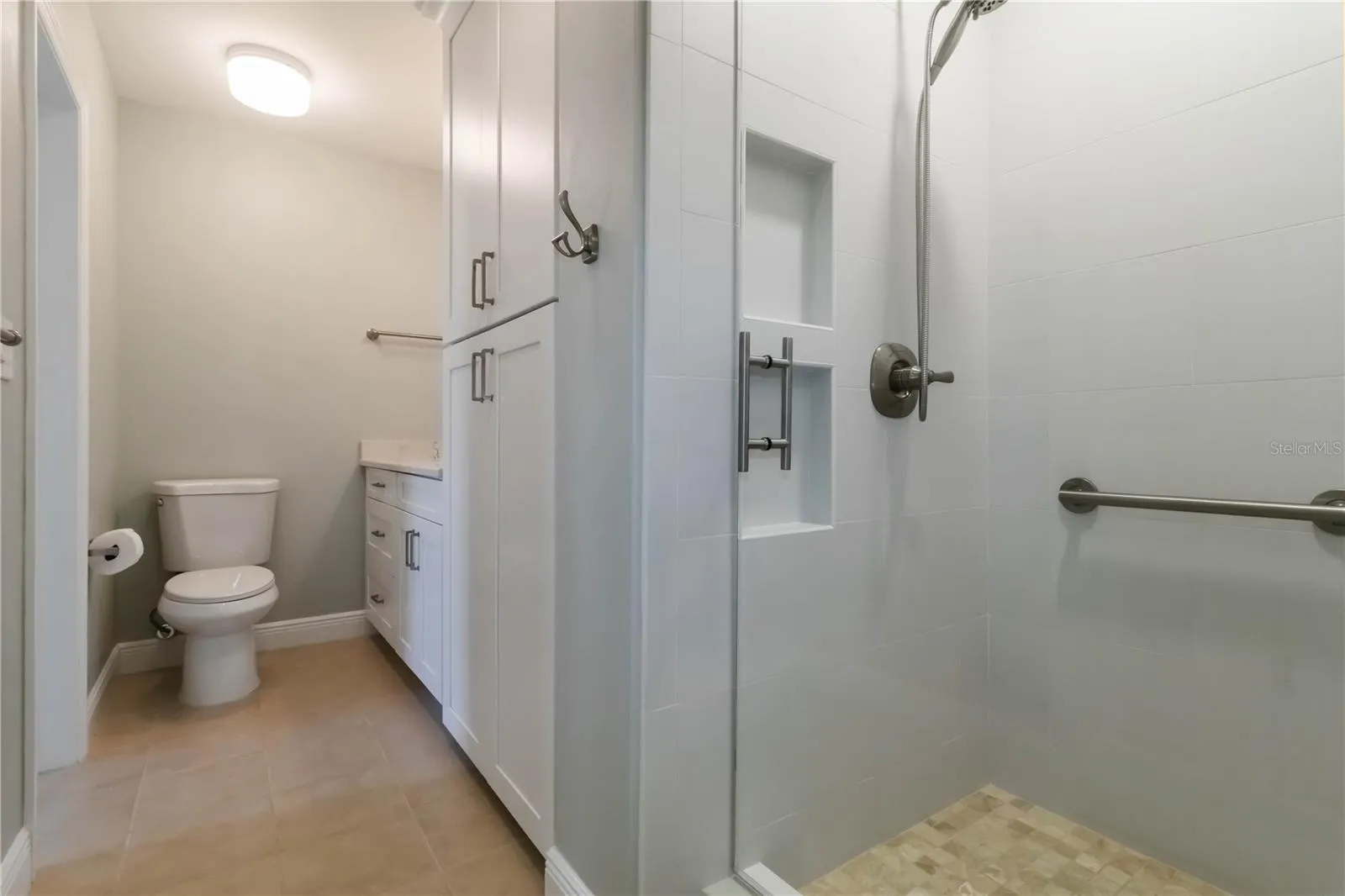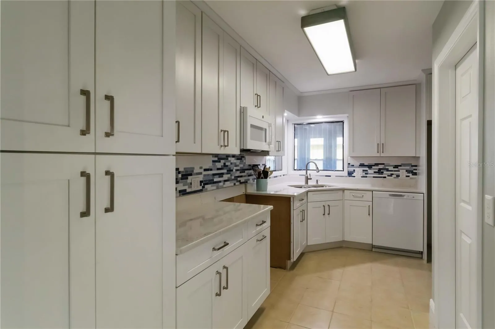 Step inside to find tile floors throughout, a newly renovated kitchen, and two fresh, modern bathrooms. The kitchen shines with 42-inch soft-close shaker cabinets, quartz countertops, and plenty of workspace for cooking or entertaining. Both bathrooms feature step-in showers, shaker cabinetry, quartz counters, and ample storage.