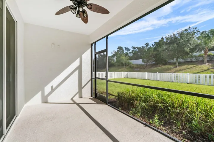 Welcome to this beautifully maintained Fresh Spring model by Neal Communities in the sought-after Ridge at Crossing Creek. Built in 2018 and barely lived in, this 3-bedroom, 2-bath home offers 1,814 sq ft of thoughtfully designed living space plus a versatile den, perfect for a home office or creative retreat. An open floor plan with crown molding, recessed lighting, and neutral finishes flows into a gourmet kitchen featuring granite counters, stainless steel appliances, and an inviting island for casual dining or entertaining. Triple sliding doors lead to a covered and screened lanai overlooking a fenced yard with peaceful preserve views, creating a seamless indoor-outdoor experience. The spacious primary suite includes a large walk-in closet and a spa-inspired bath with frameless glass shower and stone counters. Additional highlights include an extended garage, laundry room, and energy-efficient windows. The gated community offers a pool, grilling area, and walking trails with no CDD fees and low HOA dues, all just minutes from shopping, dining, I-75, and Gulf Coast beaches. Move-in ready and easy to show, schedule your private tour today!
