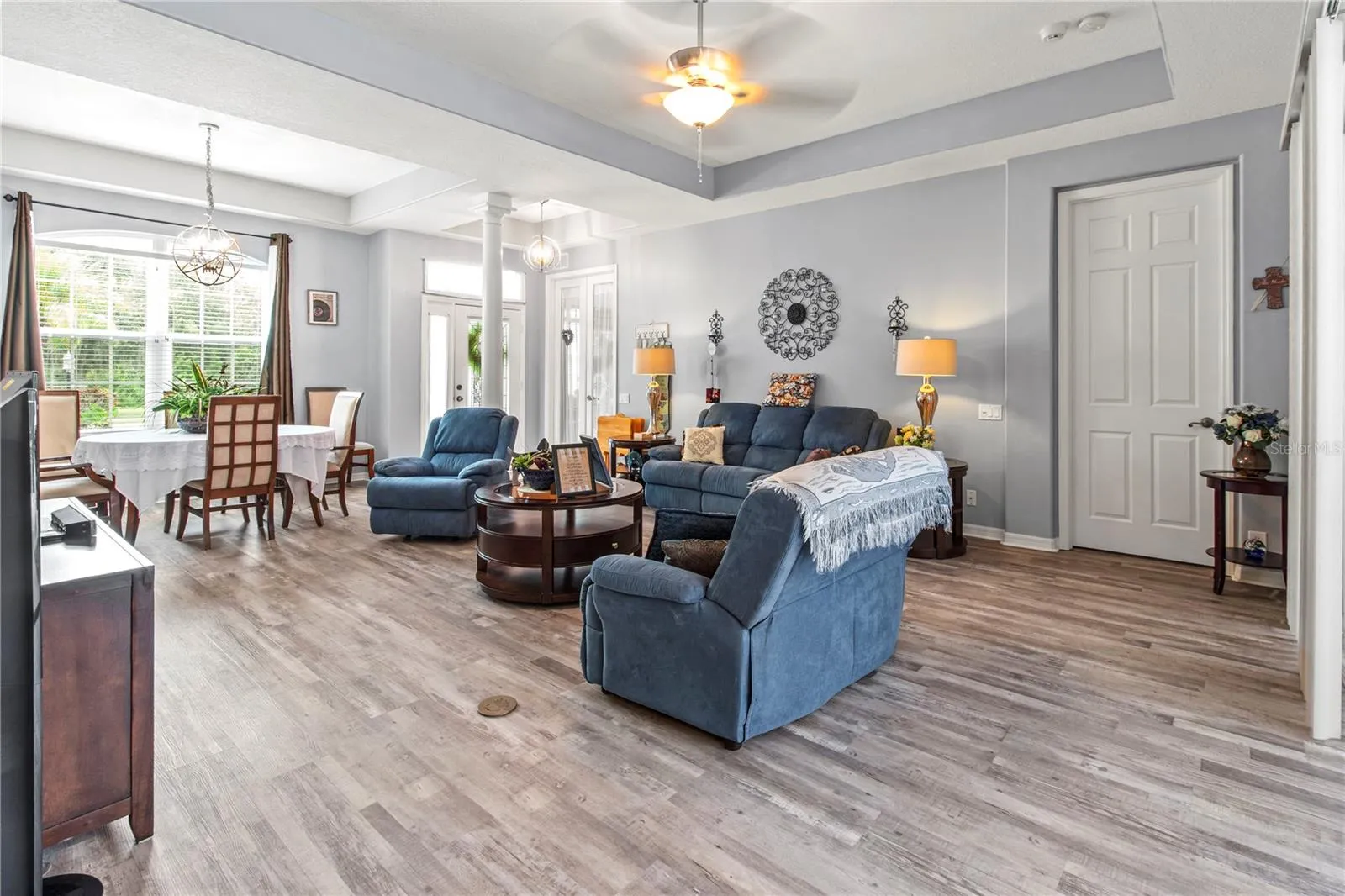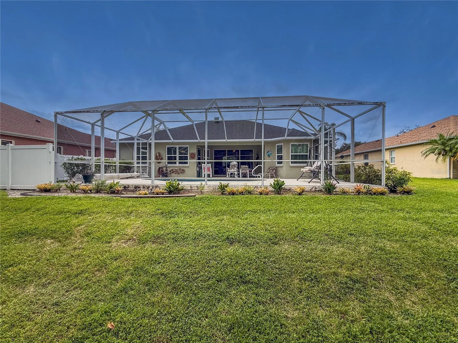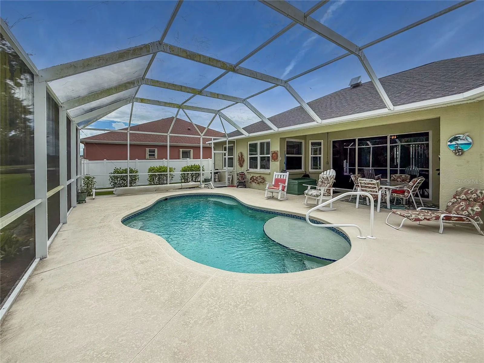 One or more photo(s) has been virtually staged. Welcome to this stunning 3-bedroom, 2-bathroom home in the prestigious gated community of Chelsea Oaks, where elegance meets comfort in perfect harmony. This beautifully updated 1,836 square foot residence sits on a tranquil 0.22-acre lot, offering an entertainer’s paradise with a saltwater pool featuring solar heating and breathtaking preserve views. The bright, open floor plan showcases thoughtful modern upgrades throughout. The heart of the home features an updated kitchen with refinished cabinets, luxurious marble countertops, and new backsplash—a culinary haven where functionality meets style. New luxury vinyl flooring installed in 2024 creates seamless flow between the dining room, living room, and kitchen spaces. The primary bedroom serves as a serene retreat with spa-like bath and generous closet space, while two additional bedrooms and a flexible den accommodate family, guests, or home office needs. Practical upgrades include hurricane-rated windows and a new roof installed in 2021, providing peace of mind and energy efficiency. Step outside to your private oasis featuring a solar-heated saltwater pool installed in 2014. New astroturf and vinyl privacy fence dog area installed in 2025. With no rear neighbors and preserve views, this backyard sanctuary offers unmatched privacy for entertaining or quiet relaxation. Chelsea Oaks provides resort-style living with just 210 homes, featuring gated entry, community pool, playground, and basketball court. The community includes cable and internet services, adding convenience to luxury living and No CDD and low HOA fees. Located minutes from Fort Hamer Park on the Manatee River, residents enjoy kayaking, fishing, and waterfront recreation. World-class beaches including Anna Maria Island and Siesta Key are short distance away, while shopping at The Shops at Silver Leaf and quality schools like Parrish Community High School enhance the neighborhood’s appeal. This exceptional home combines thoughtful upgrades with an unbeatable location in one of Parrish’s most desirable communities.