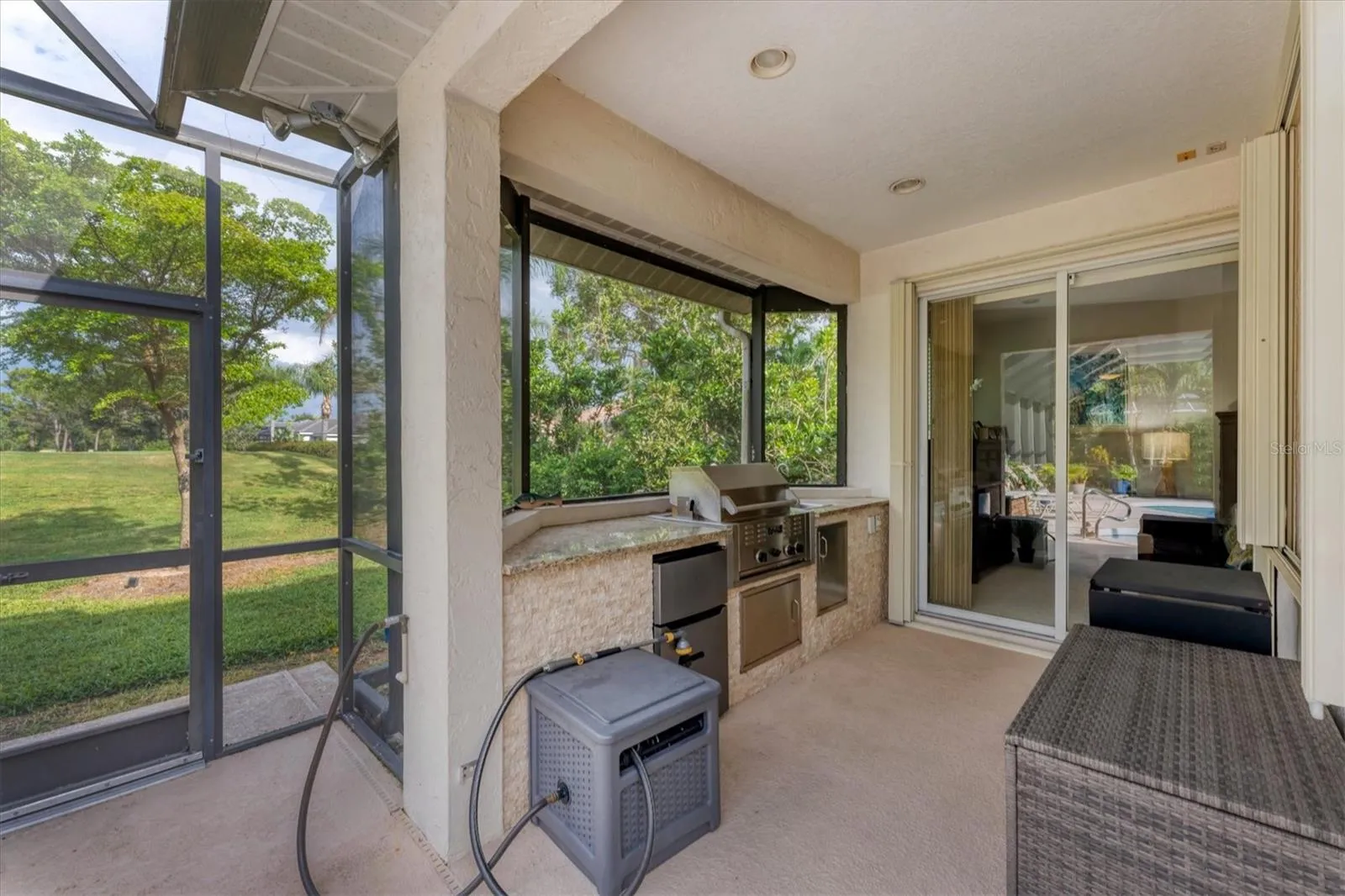 Welcome to your own piece of paradise tucked inside the well established Calusa Lakes. Nothing is better than a loved home that’s as inviting as this gem. Since owning the home, the sellers have invested nearly $60,000 in thoughtful upgrades, including exterior features, landscaping and interior finishes that truly make this home spectacular. The floor plan is designed with everyday living in mind. The split layout offers privacy, while open living spaces give you plenty of room to gather. Each side of the home features its own primary bedroom with a full bathroom, giving you the rare convenience of two private suites. There’s also a separate in-law suite with its own entrance and bathroom that is ideal for extended family, visiting friends, or guests who want a little extra privacy. For peace of mind, the home is equipped with a whole house generator and easy to use accordion hurricane shutters, so you’re covered when needed. Full of natural beauty and awesome privacy, this home is surrounded by mature landscaping that not only creates a tranquil setting but also provides great shade. Step outside and discover your own backyard retreat, where serene views of lush greenery and a peaceful greenbelt open up to the beauty of the golf course. A heated pool, relaxing hot tub, and full outdoor kitchen make entertaining or simply enjoying a Florida evening a true pleasure. Living in Calusa Lakes means more than just a home, it’s a lifestyle. Optional golf memberships, tennis courts, and a welcoming clubhouse bring neighbors together. This is a quiet and highly desirable area, where you’re just 10 minutes from Nokomis Beach and close enough for a quick pleasant bike ride. Venice Beach and Siesta Key are also within easy reach when you’re ready for a day on the water. You’ll also find great restaurants, shopping, and all the services you need nearby. This piece of paradise is a rare blend of comfort, privacy, style, and location all waiting for you in one of Sarasota County’s most desirable communities.