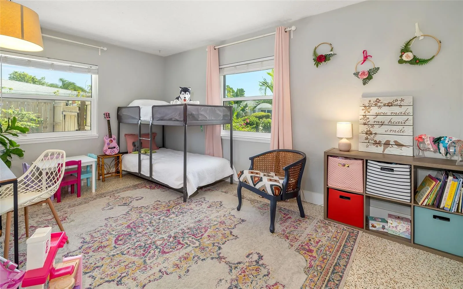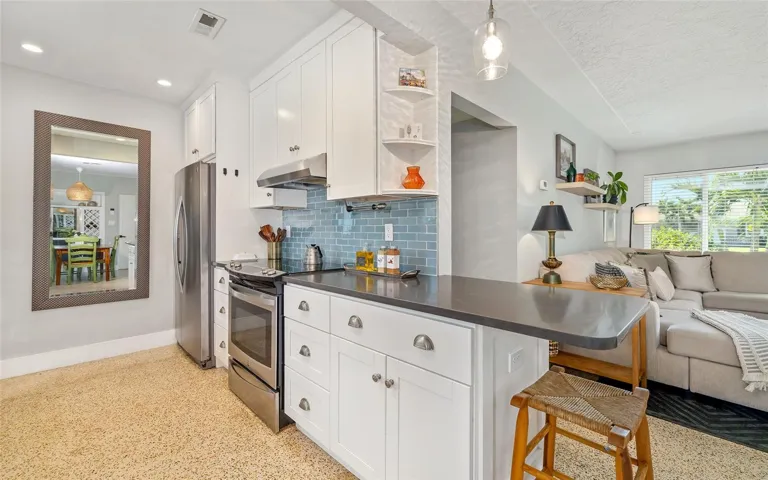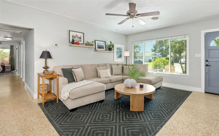 Set on a spacious 0.24-acre lot, this 1,586-square-foot classic Florida ranch residence features solid concrete block construction, new impact windows, new roof, new Carrier A/C system, and cool terrazzo floors. The updated kitchen and refreshed second bath bring a contemporary touch to a timeless layout, while the enclosed Florida room offers additional living space filled with natural light. The fully-fenced yard has lush zoysia grass, two brick-paver patios, irrigation, outdoor lighting, and a storage shed.