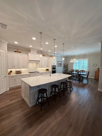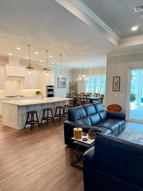 Elegant details are found throughout the home, including quartz counter tops, crown molding in every room and high-impact glass on all windows and doors. The oversized two-car garage easily accommodates two full-size SUVs while still offering plenty of room for a workbench, tools, shelving, storage, and lawn maintenance equipment. An electric vehicle charging outlet is also installed. Additional features include a tankless propane hot water system, a whole-house water filtration and softening system, and a two-zone air conditioning system designed for efficiency—one zone dedicated to the master suite and the other for the rest of the home. Outdoor living is a highlight, with a heated pool featuring an in-floor cleaning system and a self-filling feature for easy maintenance, all set within a spacious and private backyard perfect for relaxing or entertaining. Showings available by appointment for serious, qualified buyers.