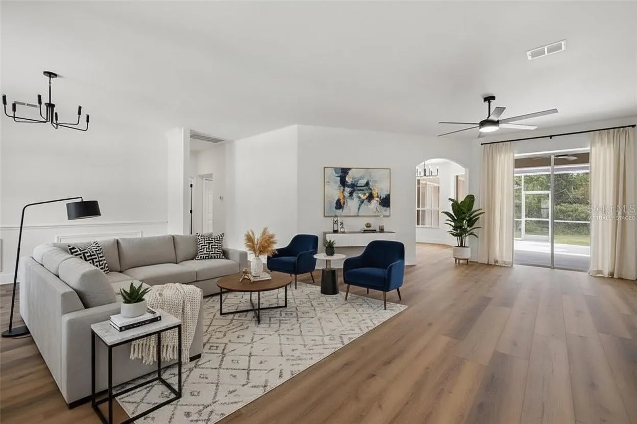 Some photos have been virtually staged to show furniture placement and potential use of space. This beautifully remodeled 4 bedroom home showcases beautifully landscaped yards, an open-concept floor plan, and a bright, natural light–filled layout with soaring ceilings. Built with durable poly-steel construction, it offers lasting strength and energy efficiency throughout.