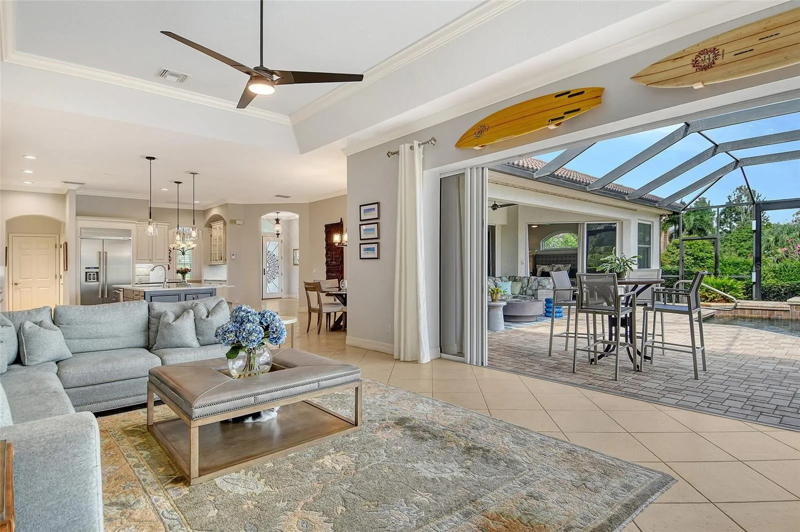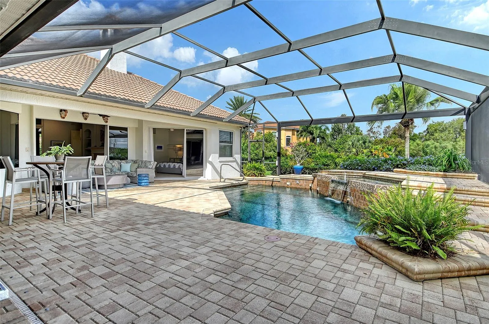 Nestled at the end of a peaceful cul-de-sac in the exclusive Lakewood Ranch Country Club West community, this impeccably maintained 3-bedroom, 3-bath home with an AIR-CONDITIONED 4+ CAR GARAGE offers the perfect blend of luxury, comfort, and breathtaking views. Spanning over 3,300 sq. ft., this residence is situated on OVER HALF AN ACRE and designed for effortless indoor-outdoor living. A huge side yard which is approved for FENCING is perfect for your furry friends or outdoor sports and play. Peace of mind is secure with a WHOLE HOUSE GENERATOR by GENERAC, HURRICANE IMPACT WINDOWS, KEVLAR CURTAINS for lanai coverage and protection, and a whole-house surge protector. Other premium features include whole-house water filtration and softening system, a new pool heater and the interior and exterior of the home have been recently repainted!