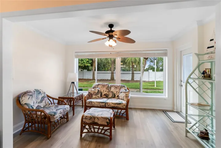 This light and bright unit offers 1,078 sq. ft. of living space (1,134 sq. ft. including the enclosed Florida room) and provides access to a saltwater canal, perfect for those who love the coastal lifestyle without the waterfront price tag.