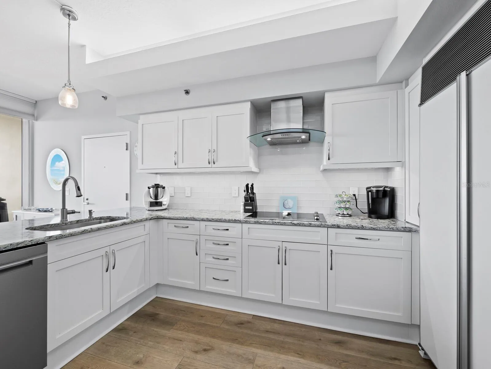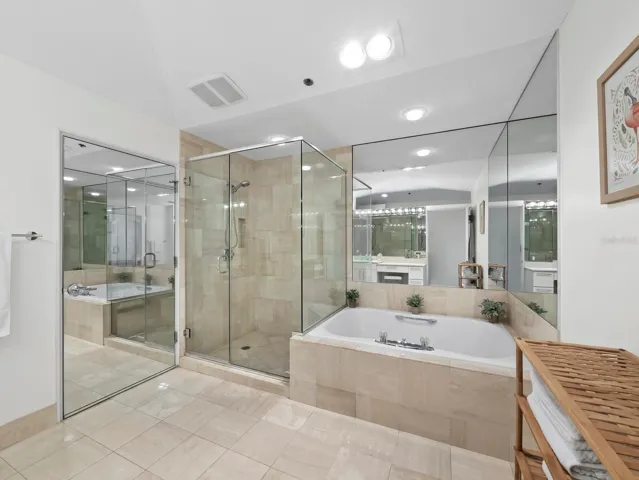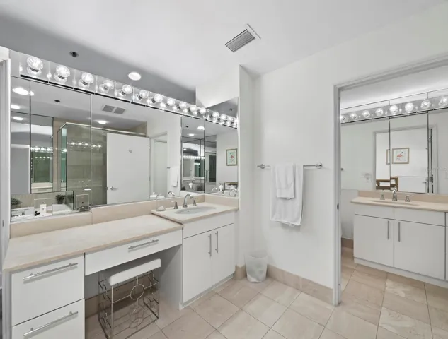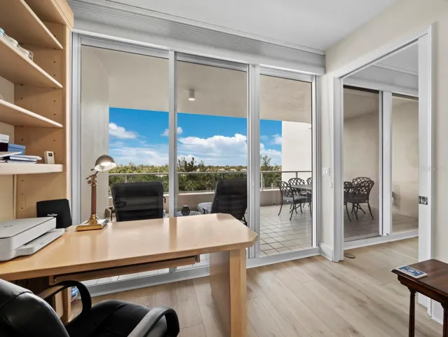 Set above the sparkling waters of Sarasota Bay, this beautifully updated 3BR/3.5BA, 2,550 sq. ft. residence in Grand Bay on Longboat Key offers refined living with a seamless, well-planned layout. From the moment the private elevator opens to your foyer, the atmosphere feels bright and balanced, with rich wood floors, crown molding and recessed lighting framing panoramic views of the bay, Harbourside golf course and pond. The spacious living room opens to an expansive terrace overlooking the water, while the formal dining area provides a graceful space for entertaining. The reimagined kitchen combines form and function with all-white cabinetry, stone countertops, stainless-steel appliances and a breakfast bar. A flexible third bedroom—with custom built-ins and terrace access—can also serve as a private office or sitting room. The primary suite is a peaceful retreat with terrace access, a large walk-in closet, and a luxurious bath featuring dual vanities, soaking tub, glass-enclosed shower and bidet. Additional highlights include a laundry room and one covered parking spaces. Grand Bay residents enjoy resort-style amenities including two pools, a clubhouse, fitness center, tennis courts, and deeded beach access through the private Bay Isles Beach Club for exclusive Gulf-front enjoyment.