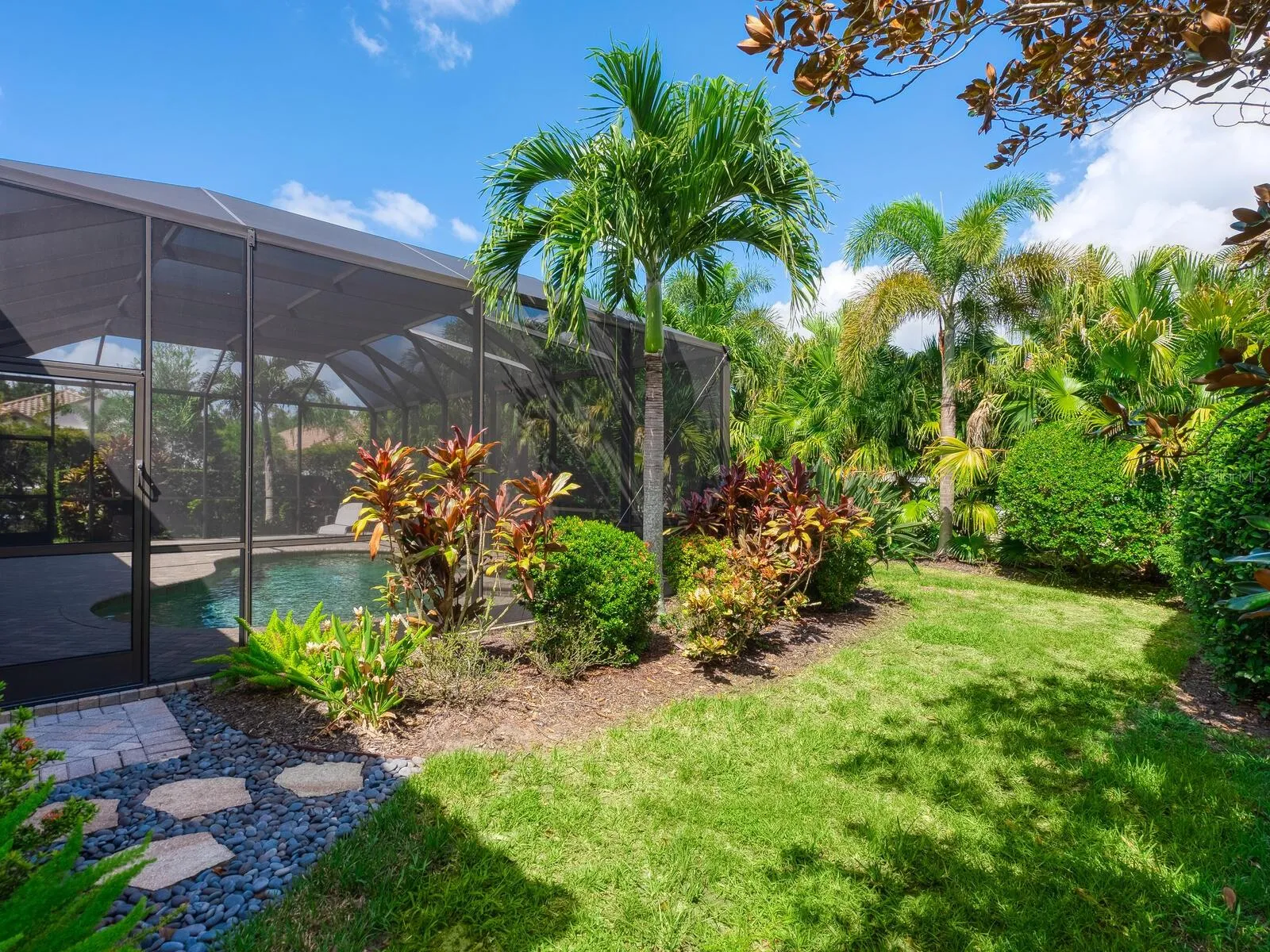 Discover this masterfully designed home beautifully accented by lush landscaping and nestled in a premier maintenance free community in Lakewood Ranch Country Club. From the moment you step in through the updated designer front door, you will marvel at the host of exceptional upgrades that embellish the living spaces including tray ceiling treatments in Family Room, Master Bedroom and Office with double entry glass doors. Preparing your favorite meals is a delight from the well-appointed kitchen featuring new stainless appliances, rich wood cabinetry, a stylish tile backsplash, granite counters, under cabinet lighting, pantry, breakfast bar and a charming dinette area that’s perfect for enjoying your morning coffee – all open to the family room making entertaining a breeze. The master suite is fit for royalty with custom suited walk-in closets and a master bathroom ideal for spa-like pampering. Sleek sliding doors from the family room open to generously sized heated Pebble Tec pool and spa with paver deck and pool bath, landscaped perfectly for privacy and beautifully lit in the evenings for poolside entertaining. Other notable features include home exterior painted 2023, tile and engineered hardwood throughout, new exquisite light fixtures and fans, full lanai cage refurbished 2025, new wireless pool controls 2025, lanai wood ceiling treatment, and air conditioned garage. Residents of the Lakewood Ranch Country Club are within easy reach of peaceful nature trails and parks, and just a short distance from the Main Street shopping district, UTC Mall, medical facilities, and I-75 for an unparalleled lifestyle defined by relaxation and recreation.