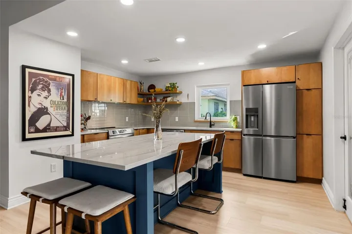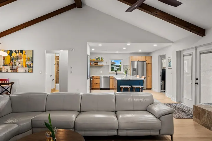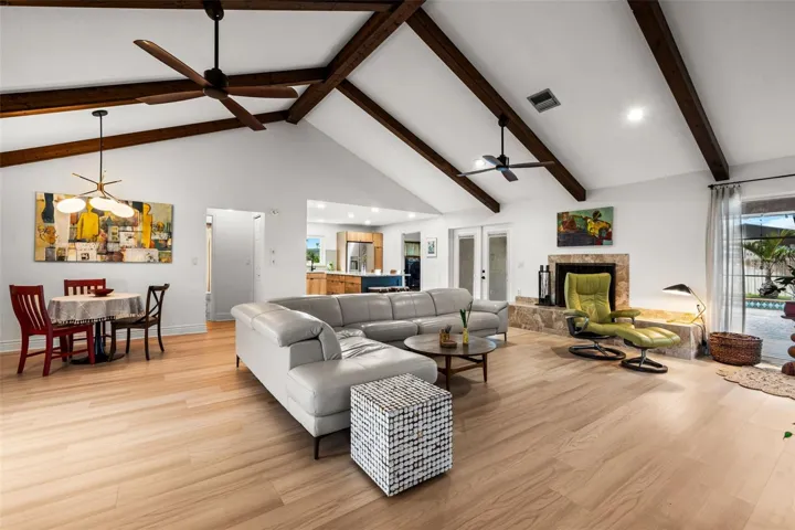 Discover your dream home in the highly sought-after Pinebrook South community, just minutes from Venice and Nokomis beaches, Venice Island, shopping, dining, I-75, and nature preserves. This beautifully updated 2-bedroom, 2-bath home with a bonus room, perfect for a home office or den, offers the ultimate Florida lifestyle! Step inside to an elegant open-concept living space with soaring cathedral ceilings and a wood-burning fireplace in pristine condition. The custom Craftsmaid kitchen is a chef’s dream, boasting soft-close cabinetry, pull-out drawer organizers, a spacious island with Quartzite countertops offering additional seating, and all-new appliances. The adjacent walk-in pantry/laundry room features updated tile and a stylish coffee bar, making mornings effortless. Luxury flows throughout with new flooring, abundant recessed lighting, and upgraded hardware on every door. The spacious primary and guest bedrooms both offer walk-in closets, while the bonus room provides endless possibilities. Outdoor living is just as spectacular! The expansive pool lanai, extended in 2021, is partially covered featuring a beautiful yellow pine ceiling and a new pool cage, perfect for year-round relaxation. The resurfaced solar-heated pool with a new pump & filter in 2022 is your private retreat, while the front porch with a charming wood ceiling and new screens offers another inviting space to unwind. Additional key upgrades include a new roof, fresh interior and exterior paint, new landscaping, and a full privacy fence. Enjoy countless community amenities including a boat ramp, kayak and canoe launch and storage, fishing dock, sprawling community pool, and a spacious clubhouse featuring pool tables, games, a full kitchen and entertainment areas. Canal access leads you straight to Donna Bay, the Jetties, and the Gulf of Mexico! Bring your canoe or kayak and start exploring all of what Florida living has to offer. This home is a rare find. Schedule your private showing today!