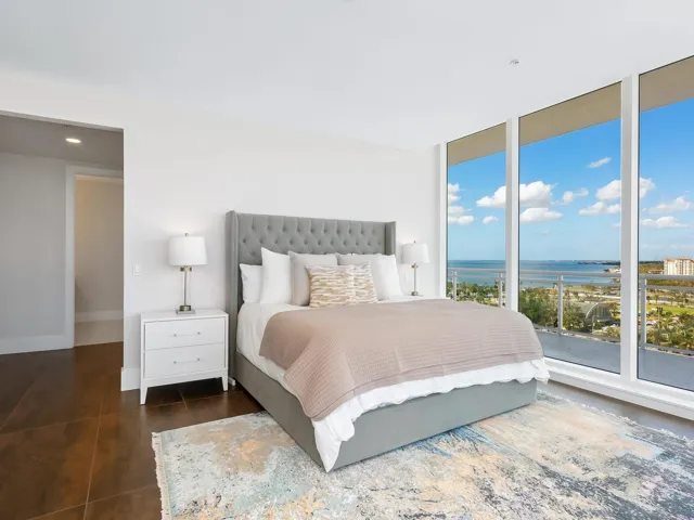 Welcome to BLVD Sarasota, a stunning downtown sanctuary in the sky where luxury living meets extraordinary views from every room. Perched in the desired corner stack of the building, this exclusive residence offers uninterrupted, floor-to-ceiling panoramas of Sarasota Bay and the vibrant city skyline — all from the comfort of each space in the home. Whether you’re waking up in the primary suite, preparing a meal in the chef’s kitchen, or hosting guests in the expansive living and dining areas, you’re surrounded by natural beauty at every turn. Exit your private elevator into over 5,000 square feet of exquisitely designed indoor-outdoor living. The open floor plan is drenched in natural light from walls of PGT impact-rated glass, ensuring every room becomes a front-row seat to Sarasota’s spectacular sunsets, coastal waters and sparkling city lights. The oversized, wrap-around terrace extends your living experience outdoors, offering multiple seating, lounging and dining areas — all designed to showcase the unrivaled, wrap-around water and city views. Offered turnkey furnished, this residence includes three spacious bedrooms with en-suite baths, a private office and two additional half baths, blending the space and comfort of a single-family home with the ease of elevated condominium living. Interior features include soaring 11-foot ceilings, Lutron-controlled lighting, motorized window shades, premium finishes, and designer-selected furnishings that elevate the elegance throughout. The gourmet kitchen is a showpiece with custom gray Irpinia cabinetry, quartz countertops and top-of-the-line appliances — all positioned to ensure you never miss a moment of the view. Entertain effortlessly with two oversized pantries, dual sinks and generous storage. The primary suite is a retreat, offering breathtaking vistas right from bed, along with dual custom walk-in closets and a spa-inspired bath with a soaking tub, frameless glass shower, and refined Kohler fixtures. BLVD Sarasota is a lifestyle unlike any other, offering residents top-tier amenities such as a rooftop infinity-edge pool, outdoor kitchen, wine cellar, state-of-the-art fitness center, golf simulator and a fifth-floor pet lawn with a grooming station. Enjoy two premium parking spaces, a private elevator entrance and a humidity-controlled storage locker. Just a short distance from the 53-acre Bay Park and Sarasota’s world-class dining, arts and marina scene, this is more than a home — it’s your front-row seat to the best of the Gulf Coast. Residence 1201 is not just a place to live — it’s a window to the world, where every room frames an unforgettable view. Seller to include a $50,000, 1000 North resident-only membership to the building’s forthcoming private social and supper club, opening in late 2025, offering exclusive culinary experiences, event access and perks solely for residents.