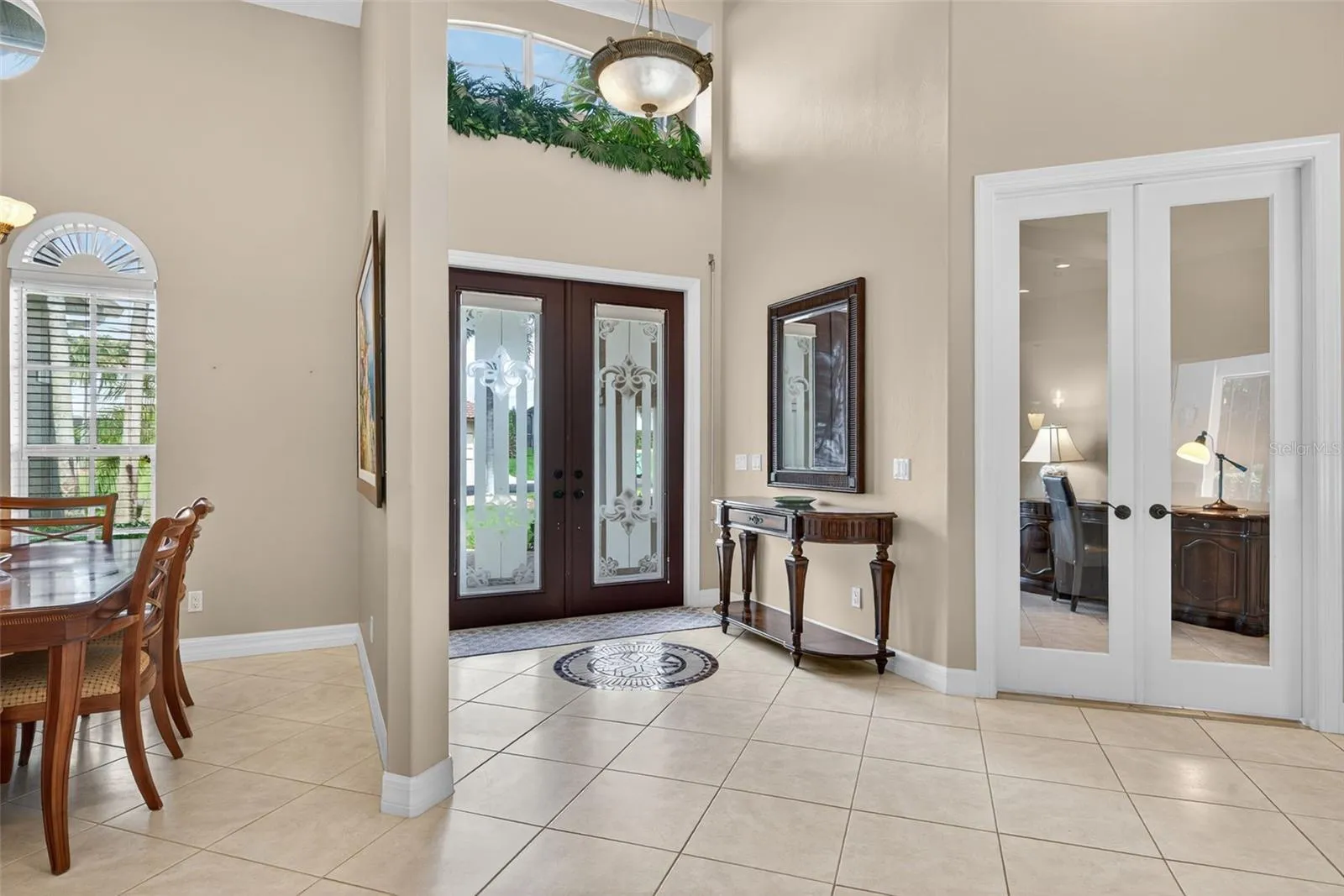 This elegant home features 3 BEDROOMS, 2 FULL BATHS, 1 HALF BATH, a POOL BATH, and a FLEX ROOM, offering both style and functionality. Step inside to find SOARING CEILINGS, a spacious GREAT ROOM WITH TRAY CEILING OVERLOOKING THE POOL, and a FORMAL DINING ROOM perfect for gatherings.