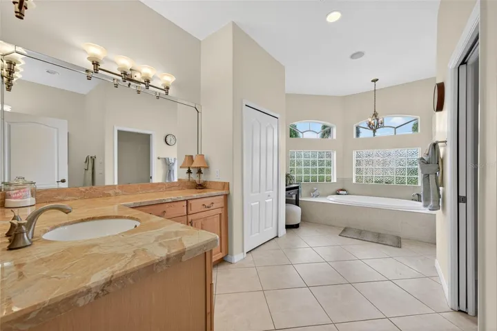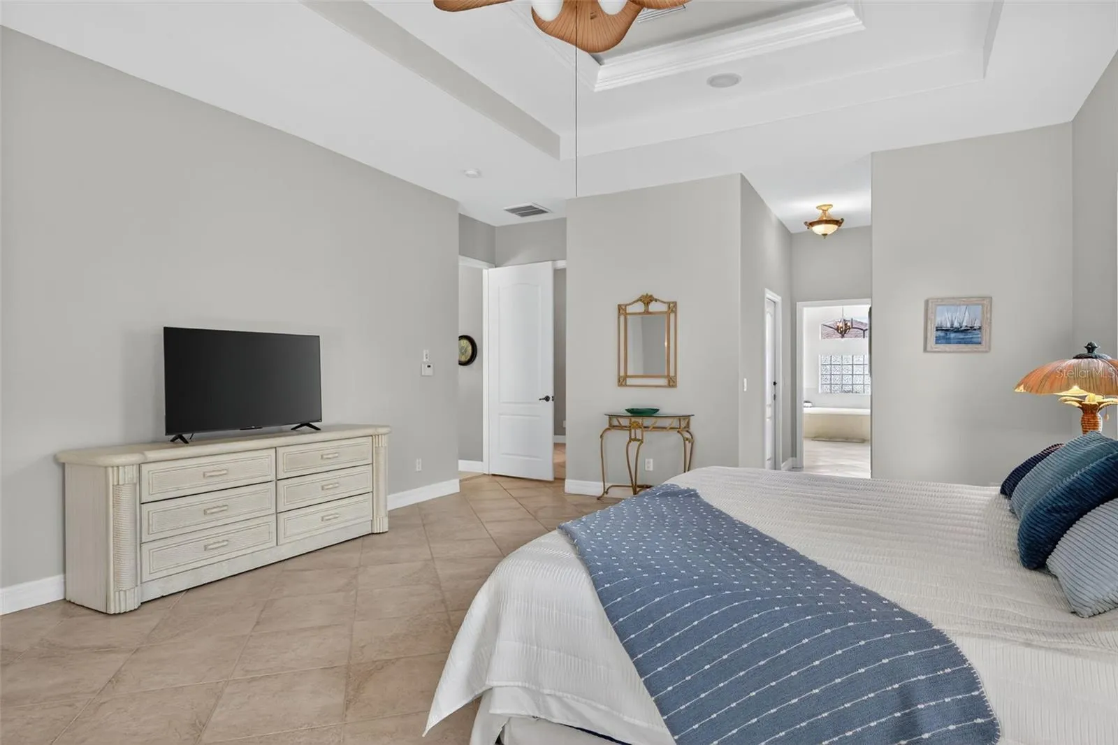 Your PRIMARY OWNER’S SUITE is a true sanctuary, featuring a TRAY CEILING, FRENCH DOORS LEADING TO THE LANAI, and a luxurious ensuite with DUAL VANITIES, a SUNKEN TUB, LARGE WALK-IN SHOWER, and abundant natural light. All bedrooms include WALK-IN CLOSETS for exceptional storage.