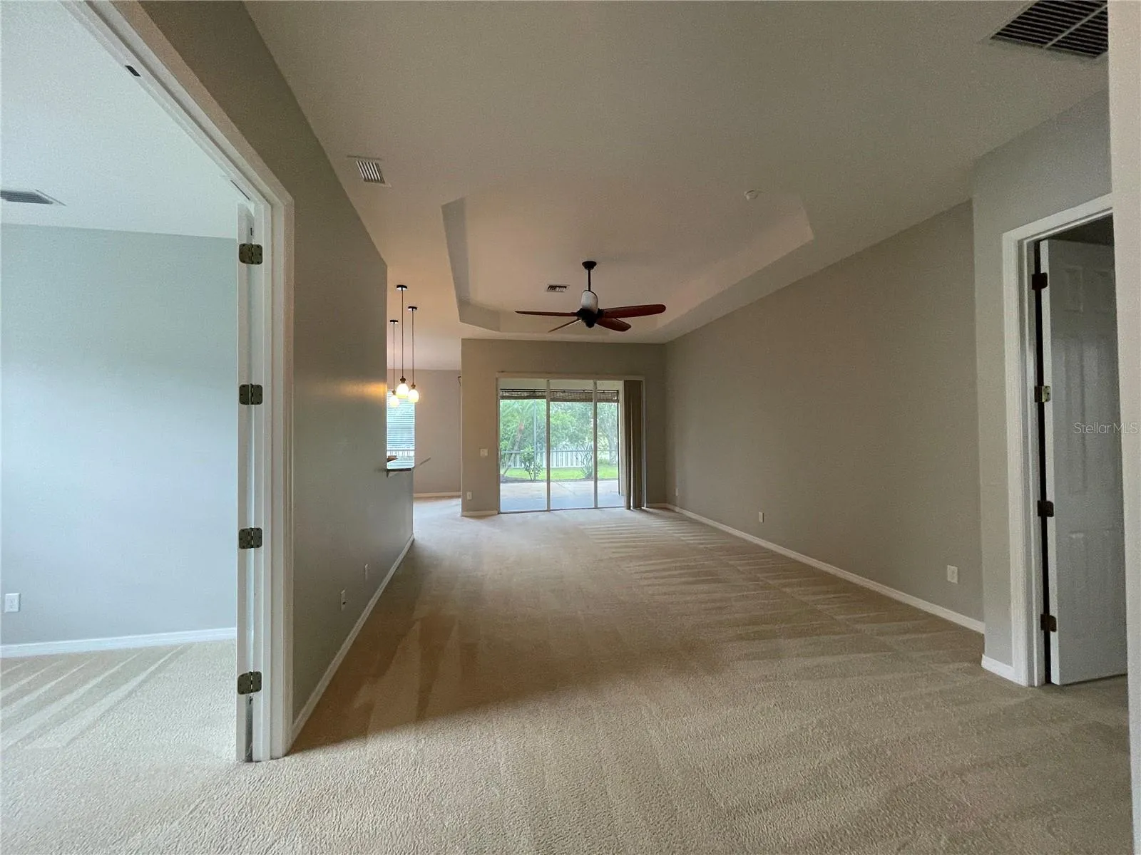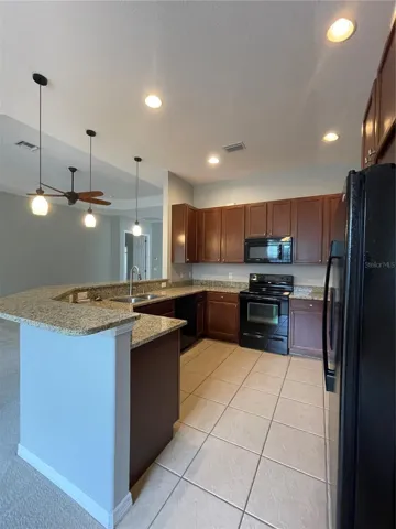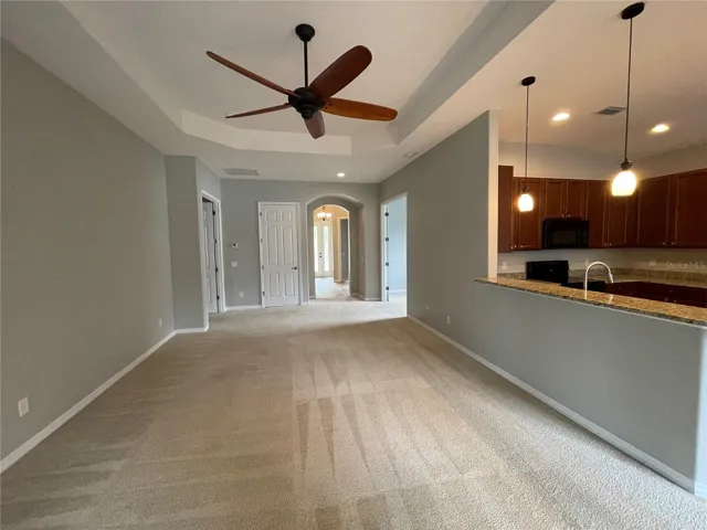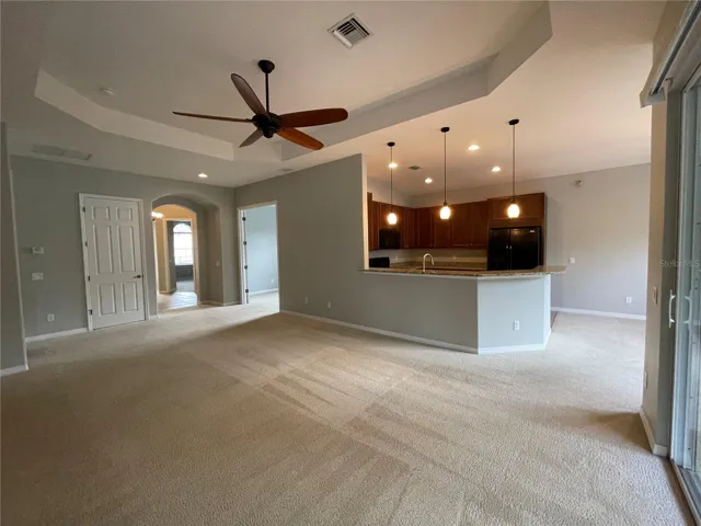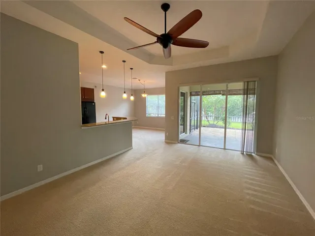2 Beds, Plus Huge Den, 2 Full Baths and lawn care included! This immaculate Medallion home is situated on a beautiful lake in River Plantation, where you can enjoy stunning sunrises and cool breezes on your huge extended lanai. Recently entirely freshly repainted both inside and outside. This home boasts 2 bedrooms as a split plan, PLUS a huge Den with glass french doors that would make a great office or additional 3rd room. Soaring ceilings throughout, some as high as 14′ really give this home its bright and airy feel. The kitchen has a plethora of cabinets and beautiful granite countertops, with a whisper quiet dishwasher among the included appliances and the home has a newer AC too. Lawn care is included in the rent so live maintenance free! River Plantation has many great amenities including a clubhouse, playground, tennis, pickleball and basketball courts, community pool, canoe & kayak launch, 2-mile nature trail and only minutes to the Ft Hamer Park & Boat Ramp and also only minutes from shopping and the Ft Hamer Bridge! Tenant occupied until 11.23.25, please allow 24 hours’ notice for showings.
