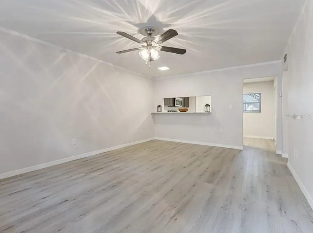 This apartment was fully renovated with brand new plank flooring throughout, new stainless steel appliances, new electrical, new a/c units, new blinds, fresh paint- you have to schedule a tour with us! Stay at home to do your laundry in our all in-one-washer/dryer combos or if you have a larger load, we have a free laundry room located just out side your back door. Walk in though the front door for an amazing view of this open floorplan. From the front you can see the living room, dining room, kitchen, and the back door to your patio area! No need to worry about parking.