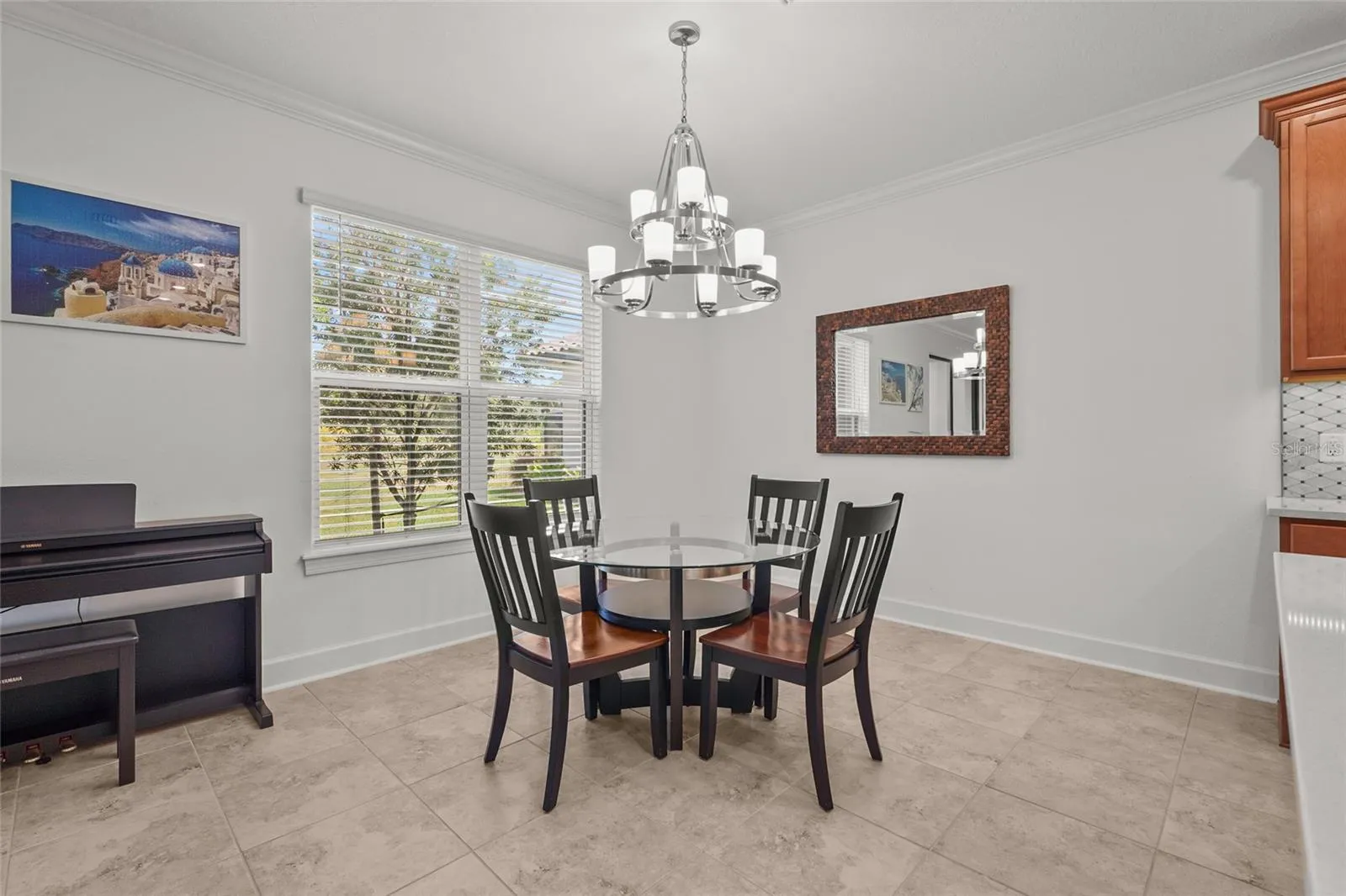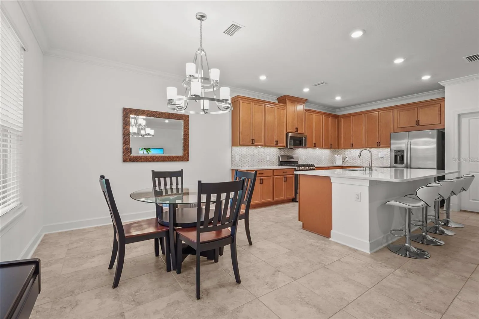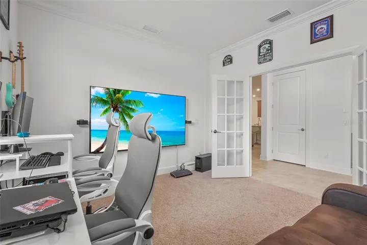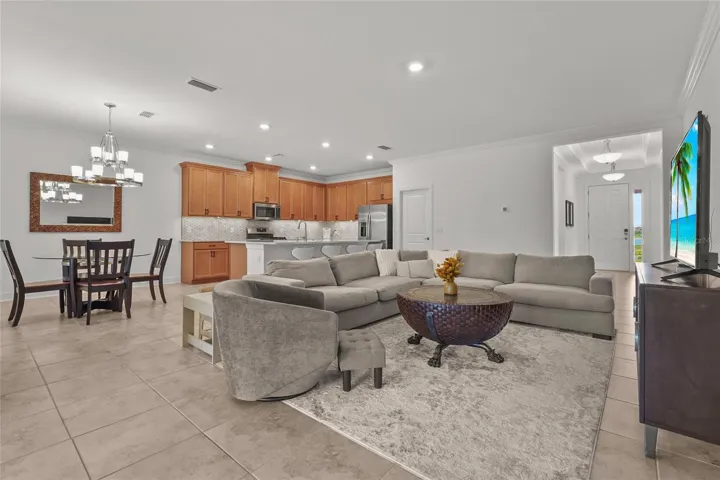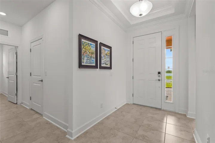 Welcome to your dream home in the highly desirable, gated community of Esplanade at The Heights! This beautifully upgraded Azzurro floor plan offers nearly 1,900 square feet of thoughtfully designed living space. With 2 bedrooms, 2 bathrooms, and a versatile den, this home effortlessly blends style, comfort, and modern functionality. Step inside to discover an elegant interior adorned with crown molding and a spacious, open-concept layout. The chef-inspired kitchen is the heart of the home, featuring GE stainless steel appliances, a gas stove, gleaming quartz countertops paired with a tile backsplash, a generous island, and a large walk-in pantry—perfect for entertaining or everyday living. The split-bedroom layout ensures privacy, while the luxurious primary suite offers a tranquil retreat with a walk-in shower, dual vanities, a linen closet, and a shared walk-in closet. The den provides flexible space ideal for a home office, hobby room, or potential third bedroom. This home has been thoughtfully enhanced with new landscaping, a screened lanai overlooking a private preserve, and a sealed paver driveway. Additional features include garage overhead storage racks, a large laundry room with a new washer and dryer, and a modern 2023 build that supports today’s lifestyle. Step outside and enjoy the tranquility of your backyard or embrace the resort-style living that Esplanade is known for. Community amenities include a sparkling pool and spa, cabana area, firepit, state-of-the-art fitness center, and lighted tennis, pickleball, and bocce courts. A dedicated Lifestyle Manager curates engaging events and social gatherings year-round. For those who enjoy the outdoors, the community also features a pet-friendly park, scenic hiking trails, and wide-open green spaces—providing the perfect backdrop for fitness, recreation, or simply soaking in Florida’s natural beauty. Perfectly situated near State Road 70 and University Parkway, you’re just minutes from premier shopping, dining, outdoor recreation, and the stunning beaches of Florida’s west coast. Don’t miss this incredible opportunity to own a piece of paradise in Esplanade and make this exceptional home yours.