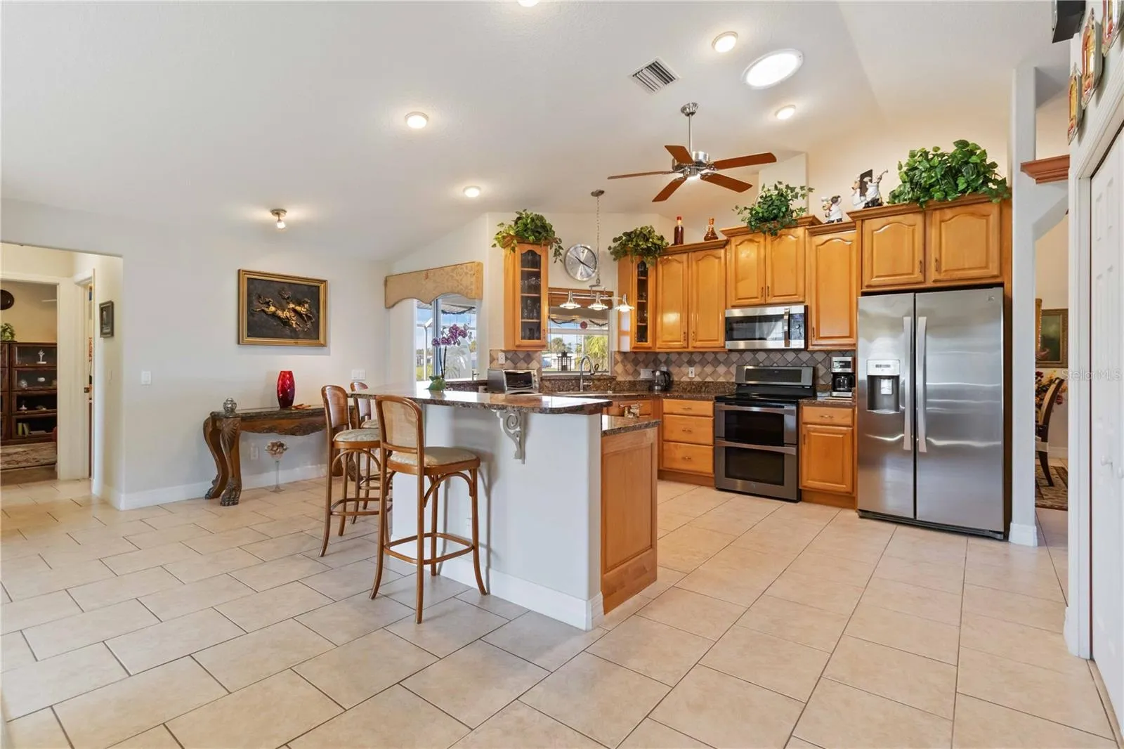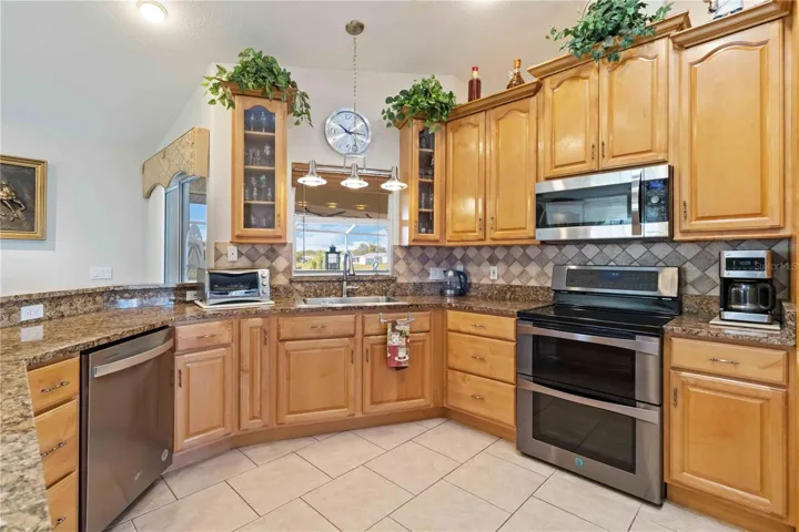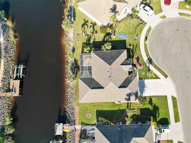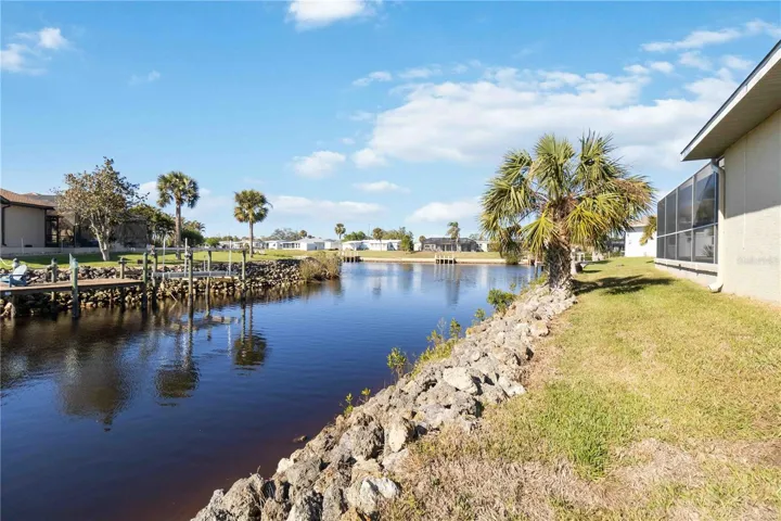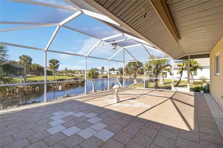 Amazing Deal Alert!!! Impressive WATERFRONT home on CUL-DE-SAC with 3 Bedrooms, 2 Bathrooms and an oversized 2 Car Garage located in the desirable deed restricted community of DUCK KEY in North Port, FL. Gulf Access through the wide canals of the Big Slough Waterway! This home exudes elegance from the moment you arrive with its mature, tropical landscape and beautiful curb appeal. As you enter the front door you will be WOWed by the custom tile entryway and architectural details. The open and split bedroom floor plan provides a Living Room, Family Room, Dining Room, and a well-equipped Kitchen. Sliding glass doors throughout lead to the large, southwest facing lanai with an extended screened in patio overlooking the beautiful water views and gorgeous sunsets. The Kitchen offers solid wood cabinets with 42-inch uppers, granite countertops, newer stainless-steel appliances including a double oven range, ample storage space, a pantry, dining area and lanai access. Just off the kitchen you will find the spacious family room that is perfect for entertaining or gathering with family. Watch TV on the custom built in wall or get cozy by the electric fireplace. The breathtaking water views continue in the Master Suite with sliding doors leading to the lanai, his and hers walk-in closets, and a private en-suite bathroom with Jack and Jill sinks and a walk-in shower. There are two additional bedrooms on the opposite side of the house with walk-in closets and a guest bathroom with outdoor patio access. ***Special features include: tile flooring throughout (no carpets), wood flooring in the primary suite, high ceilings, NEW ROOF in 2022, NEW hot water heater in 2024, freshly painted interior in 2023, NEW patio screens in 2023, entire home rain gutters, well-fed sprinkler system, rip rap seawall, and much more*** Duck Key is a quiet and peaceful waterfront community with LOW HOA fees!!! Located conveniently near dining, shopping, golf and popular local beaches. A short drive to I-75 allows for easy access north to Tampa or south to Miami. This home has the option of coming fully furnished, if desired, so all you need is your clothes and come live in Paradise!!!