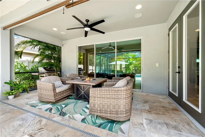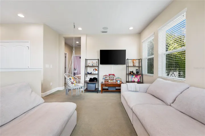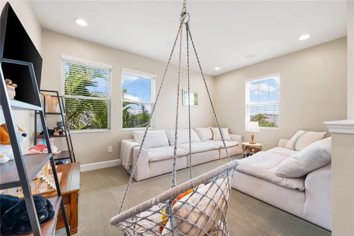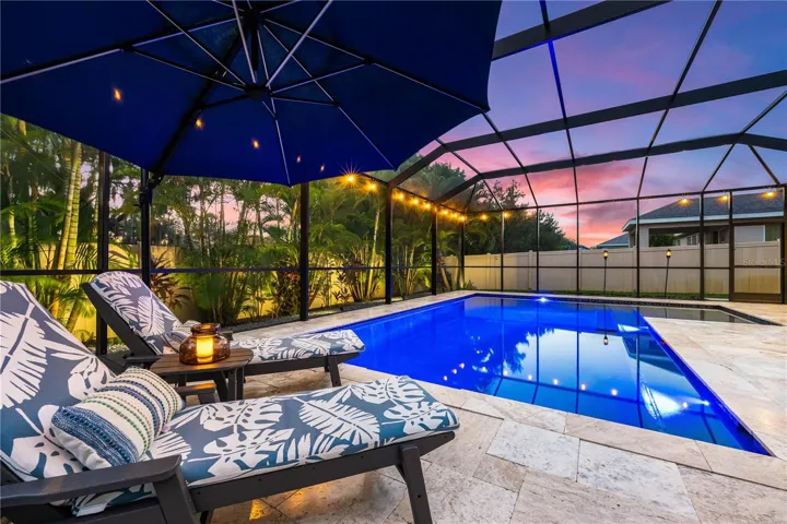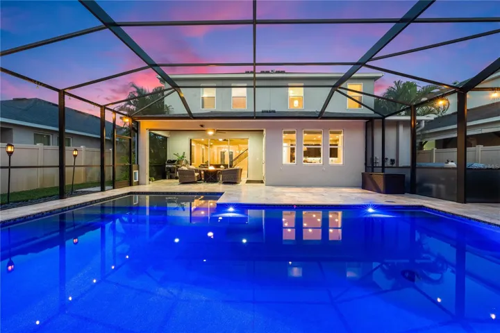 Welcome Home to this beautifully maintained property. The open Great Room is spacious and inviting, which leads right out to the gorgeous pool area and fenced in backyard. There is also a coveted 3 car garage! The floors are a neutral tile (that looks like wood) and are throughout the downstairs area. The beautiful staircase is engineered hard wood. The kitchen is huge, immaculate and stylish with granite counter tops and counter seating. Upstairs you’ll find the primary bedroom, beautiful en-suite bathroom and super-size closet. Two additional bedrooms, the second bathroom and a loft area for study or play zone. Convenient upstairs laundry is also a plus! Wait until you see the spectacular, large, saltwater pool and ample deck space, both in and out of the sun. The pool was new in 2022 and has a heater and a large sun shelf with a pool umbrella. The pool decking is travertine, and the interior of the pool is pebble tec. The lighting at night is “drop dead knock your socks off”! The exterior was painted in 2023. A whole house 50Amp generator hook-up is included for peace of mind and hurricane shutters as well. A new water heater was installed in 2024. Palmer Reserve is located very near to Tatum Ridge Elementary and the Celery Fields. Just East of 75, a growing area, with a new Publix at Fruitville Farms, and the Fruitville Library, and a short drive to the UTC area, Waterside at Lakewood Ranch for dining and shopping, and the brand-new Mote Marine Aquarium. This location can’t be beat. Easy access to I-75, or downtown and the hospital. No CDD fee and low HOA that covers cable, internet, irrigation, the community playground and common area maintenance. This home has been lovingly maintained and is in pristine condition with beautiful landscaping and landscape lighting. You will not be disappointed!!!