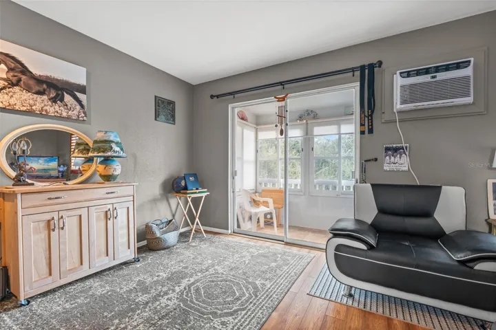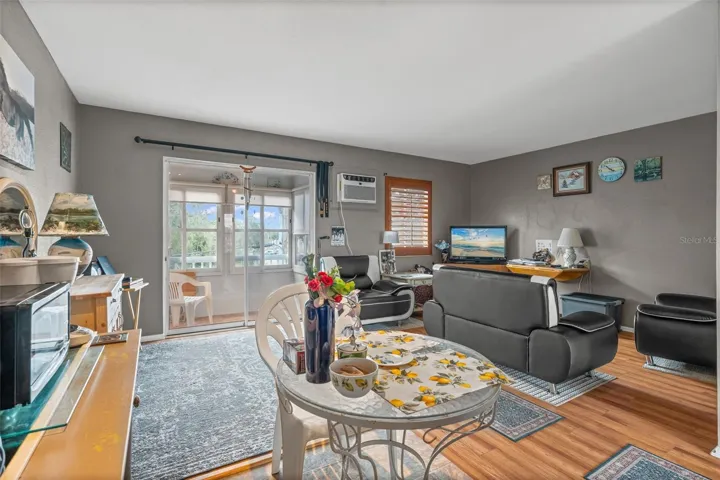 Third-floor studio in a 55+ community with an elevator just outside your door. Enjoy access to the community pool, active clubhouse, and shuffleboard courts. This recently updated condo features an enclosed hurricane lanai with hurricane-rated windows, ideal for taking in the natural light from early morning east sunrise in addition to magnificent sunset views from the west facing veranda. Also featuring full sized, deep stainless steel sink with hard surface countertop, new refrigerator, new hot water tank, new Frigidaire heating/cooling wall unit, wood laminate floors, fresh paint wall/ceiling, updated lighting, plantation shutters, updated electrical panel, and hurricane-rated storm and entry doors. Convenient location near shopping, dining, entertainment, and public transportation, and just 8 miles to the beaches of Anna Maria Island. Easy living in a well-maintained community with deeded parking space and additional guest parking for convenience.
