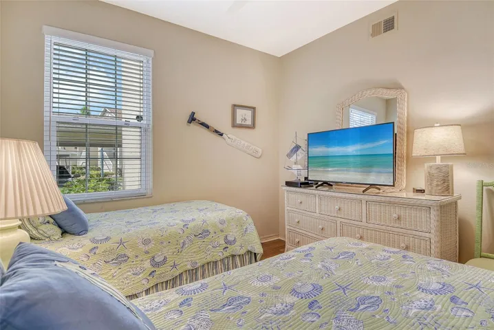 * BEAUTIFUL GROUND FLOOR CONDOMINIUM * HURRICANE IMPACT WINDOWS * TILE AND WOOD FLOORING * PRIVATE TREED VIEW * GATED COMMUNITY * JUST MILES FROM BEACHES – SHOPPING – RESTAURANTS and MORE * By far the best deal in all of Palmer Ranch! Beautiful upgraded ground floor condominium. The others just don’t compare to this better than new condominium! Corian countertops and stainless appliances in kitchen. Tiled throughout all of the main areas with engineered wood flooring in the bedrooms. High ceilings, canned lighting, open to extra lanai for extra living space. Even the windows had been repaced with hurricane impact windows and sliding door. Bathrooms (both primary and second bath) have upgraded corian countertops, sinks and faucets. Owner says, “it’s time to sell” and has priced this condominium to move! It is the lowest priced condominium in the entire development! Don’t settle for a higher priced condominium, this one has been upgraded throughout and needs nothing. Perfect for the investor as a seasonal rental (condominiums in Pinestone are easy to rent and are limited for rentals in the first 2 years of ownership), as a vacation property or a primary residence. Pinestone at Palmer Ranch is just miles from Siesta Key and other beaches, restaurants, shopping, grocery stores and more. Pinestone amenities can not be matched in this price range. Large ‘olympic’ sized heated swimming pool with large deck area, tables, chairs, lounges, umbrellas, wet bar, BBQ grills and covered picnic area. Don’t miss the 2 lighted tennis courts, 1/2 basketball court, hot tub/spa, gym/fitness room, billiard room, card room, 32 seat movie theater, library, onsite manager’s office, pickle ball, bocci ball, firepit, cornhole, conversation area, locked bike storage and more. This is the BEST DEAL IN THIS RESORT STYLE DEVELOPMENT so don’t delay!