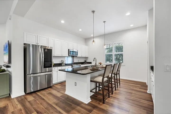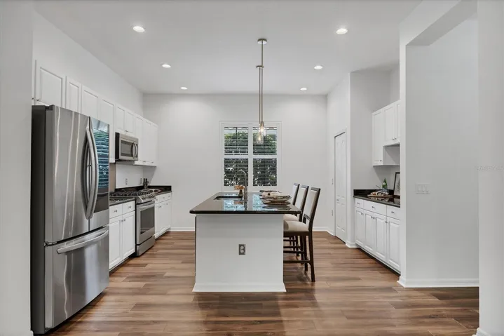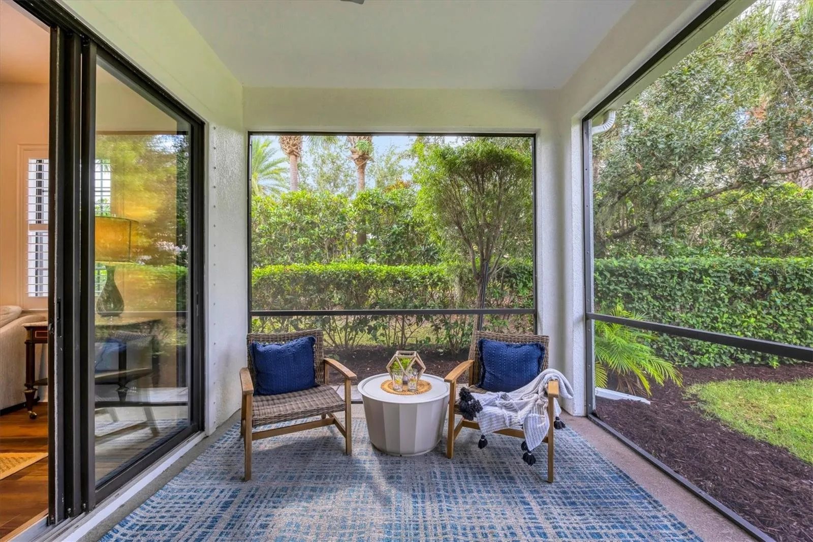 Welcome to this beautifully appointed residence in the exclusive gated community of Country Club East in Lakewood Ranch, where timeless design meets modern luxury. This exceptional two-bedroom, two-bath home is on a serene, private homesite surrounded by lush landscaping and tranquil views. A welcoming covered entry leads into an open-concept floor plan with designer lighting that creates an immediate sense of sophistication. The great room, filled with natural light, features expansive sliding glass doors that open to the lanai for seamless indoor-outdoor living. The adjoining dining area provides an intimate setting for gatherings, while the gourmet kitchen is a chef’s dream — showcasing custom cabinetry, quartz countertops, a large center island, stainless steel appliances, gas range and walk-in pantry. The private primary suite serves as a retreat with peaceful views, a generous walk-in closet, and a luxurious en-suite bath featuring dual vanities, and walk-in shower. The additional guest suite with full bath offers comfort and privacy for family or visitors. Go outside to the expansive screened lanai, with a large backyard designed for year-round enjoyment. This inviting outdoor space is ideal for relaxation and entertaining, with plenty of room for lounging and enjoying the gentle Florida breeze. Additional features include a two-car garage, tile roof, paver driveway, and a well-appointed laundry room with built-in cabinetry and ample storage. Meticulously maintained and move-in ready, this home blends elegance, comfort and functionality at every turn. In the heart of Lakewood Ranch’s premier golf community, residents of Country Club East enjoy resort-style amenities including three community pools, fitness center, clubhouse, park areas, fine dining and optional membership to the Lakewood Ranch Golf & Country Club, featuring championship golf courses, tennis and pickleball courts. Close to top-rated schools, shopping, dining and the Gulf Coast’s world-famous beaches, 7298 Belleisle Glen offers a balance of luxury living and Florida lifestyle.