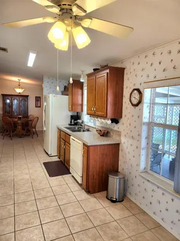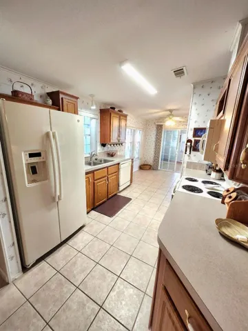 Feels like HOME! Open Concept with a spacious Single Family home feel. This is a well-maintained 3 Bedroom, 2 Bath, 2004 Jacobsen Chancellor III model Manufactured Home on a Lot and a Half in the highly desired, active 55+ Trailer Estates community. High ceilings and a large window wall create an airy Living Room. Abundant Kitchen cabinetry wraps around to the Dining Room area to form a built-in buffet, while an eat-in Dinette space adjacent to the kitchen is convenient for informal meals. Roomy Primary Bedroom with wall-to-wall closet and ensuite bath. Bonus space with built-in shelves for Office/Den can be closed off from the rest of the house for a quiet work space. Inside laundry closet. 2×6 Hurricane Resistant construction, built on a solid concrete slab extending under the entire unit, creates tons of storage under the house. Double paned windows. New Roof shingles, 2024. AC, 2017. Oversized carport allows for covered outdoor space and plenty of parking. Rarely do you find anything like this on the market! Located just down the street from the heart of the social scene; just a short walk to access the community pool, recreation buildings, shuffleboard, fitness center, and all the wonderful park amenities. You own the land. No lot rent, Park Fees are included into annual real estate taxes. Boaters have direct access to Sarasota Bay from the Marina. Trailer Estates community offers so many options for a great day! Enjoy the large, heated community pool, hot tub, gym and wood shop. The community buzzes with pickleball, shuffleboard, kayaking, horseshoes, bocce, dancing and more. A US Post Office on site. 10 minutes to the SRQ Airport. Convenient to shopping, restaurants, the Arts and everything in Bradenton/Sarasota. Bring offers!