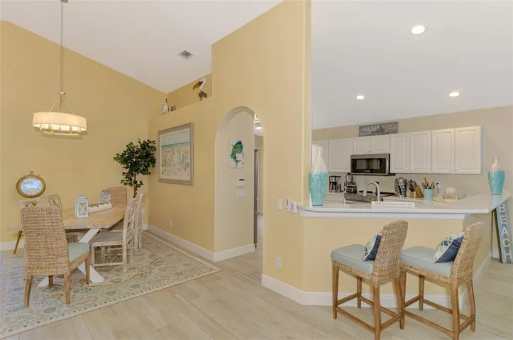 You have found your piece of paradise! This meticulously maintained 3-bedroom 2-bath pool home with a 2 car garage is located in Bermuda Club West in Plantation G&CC. Step inside and you are greeted by an open floor plan with vaulted ceilings, beautiful design features and tons of natural light and lighting. There is a dining area perfect for a quiet dinner or for entertaining guests. The comfortable living room leads out to the screened in lanai complete with heated, salt water pool, with specialty lighting, wi-fi outdoor speakers, and views of the golf course. The pool is west facing so you will also enjoy gorgeous sunsets. The pool pump, auto fill system, and pool heater are new and the heater can be controlled by an app on your phone. Coming down for the week? Turn on the heater from your phone and the pool is warm when you get here! The kitchen opens up to the rest of the living area and has a breakfast bar perfect for guests to gather around. It also boasts brand new granite counter tops! There is an eat-in-space for breakfast, a double door pantry for plenty of storage, stainless steel appliances, and a sliding door leading to a patio that’s the perfect space for your grill. The master suite offers another door to the outdoor area and there is a walk-in closet. The en-suite bathroom has a separate shower and garden tub. The two guest bedrooms are well sized and have walk-in closets.