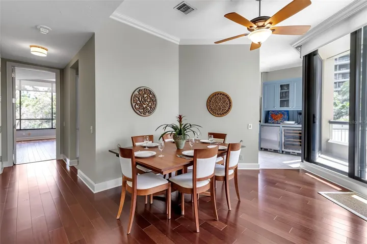 Live the lavish lifestyle only found at the Water Club on Longboat Key, an idyllic waterfront location with direct access to the white sand beaches only found along the aquamarine waters of the Gulf Coast. This exceptional, beautifully Thomas Moser furnished, 2-bedroom, 2.5-bathroom split plan features spacious en-suite bedrooms with privacy, 10-foot ceilings, floor-to-ceiling hotel-quality hurricane impact windows & sliders, Brazilian Cherry Wood floors, a lovely and convenient powder bath and an incredible master suite with generous walk-in closet and direct access to the private balcony. The masterfully remodeled kitchen showcases custom cabinetry, glass mosaic backsplash, a reverse osmosis faucet, stainless-steel appliances including a Viking stove, Sub-Zero refrigerator and separate dry bar with Sub-Zero wine and beverage refrigerators. Step out onto the extra-large terrace and enjoy the beautiful privacy of the surrounding tropical foliage. Located on the plaza level, you will have quick and easy access to world-class community amenities like 24-hour guard-gated security, full concierge service, a resort-style pool and spa, Har-Tru tennis courts, fitness center, clubhouse with catering kitchen, and over 16 acres of pristine beachfront grounds. Experience the Water Club…timeless elegance, modern design, and a lifestyle beyond compare. Located a short distance from St. Armands Circle and Downtown Sarasota’s culture, shopping and fine dining.