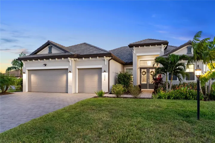 Experience the pinnacle of Florida living in this stunning 2022 Sunset Model located in the highly sought-after, gated community of Lorraine Lakes. Set on an oversized lot, this 3-bedroom, 3-bathroom home with a dedicated office/den offers an unparalleled blend of luxury, convenience, and vibrant community living in Lakewood Ranch—voted the #1 multi-generational community in the U.S. for five consecutive years.