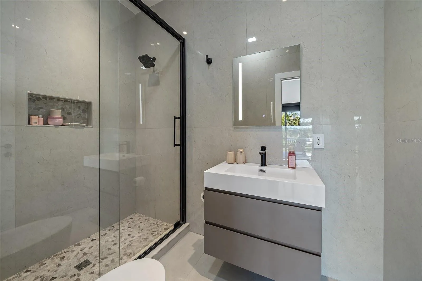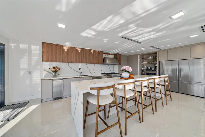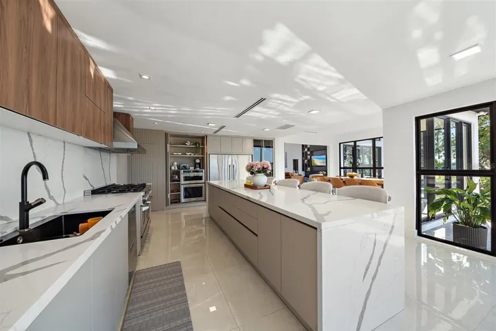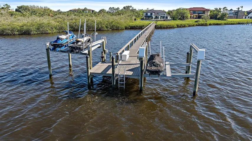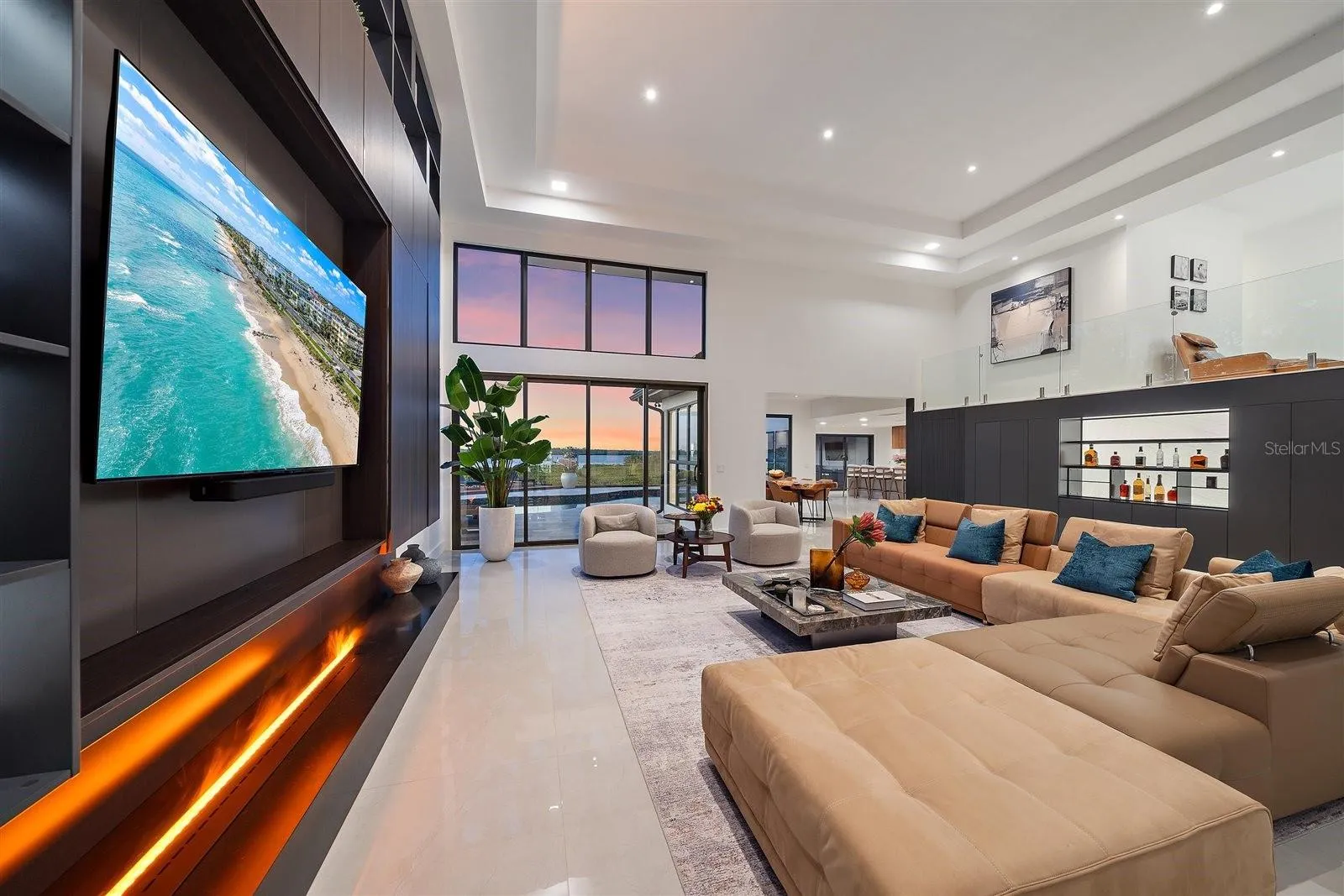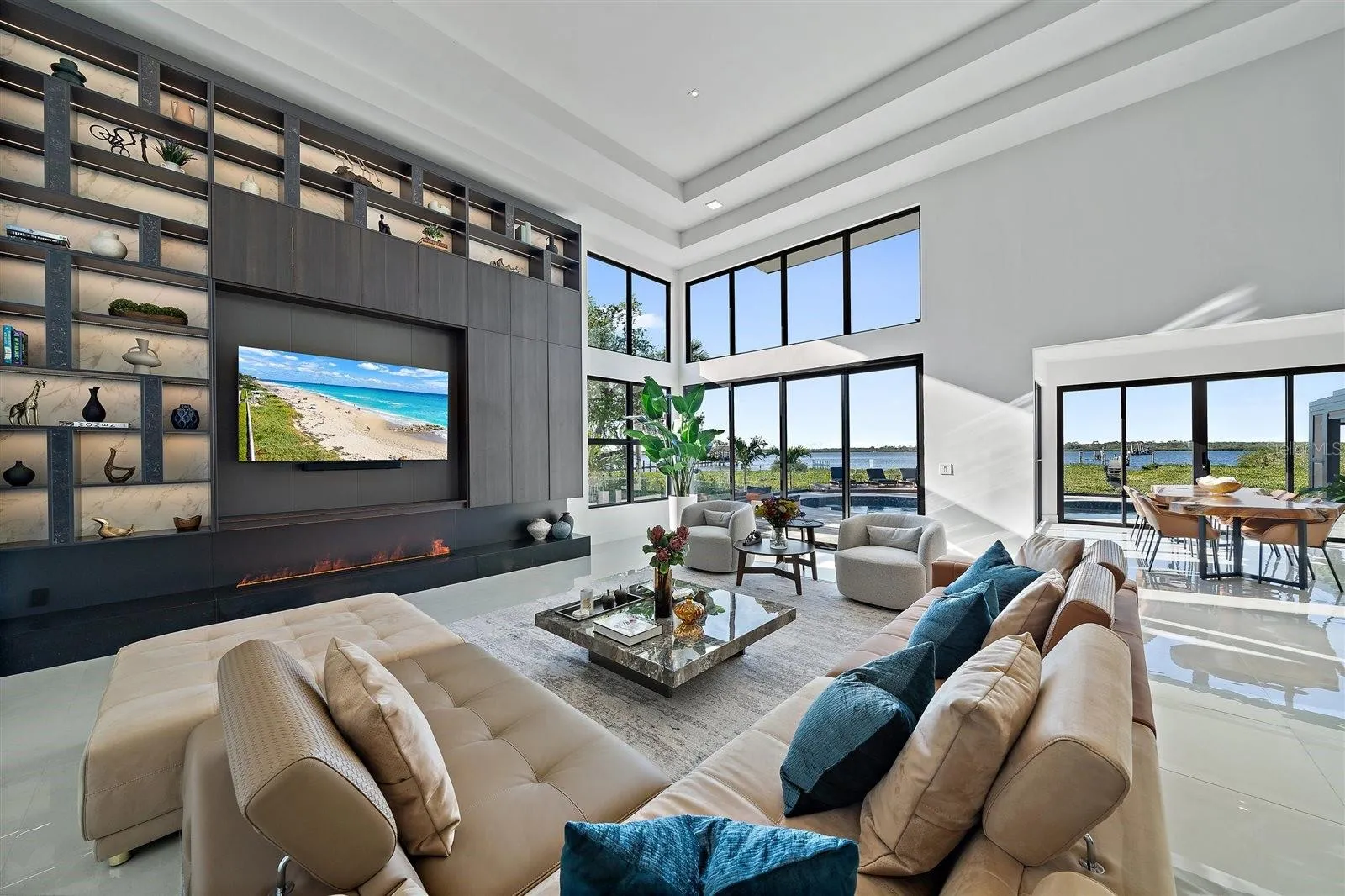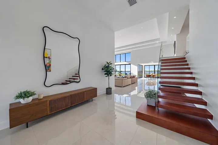 Ultra-Luxury Modern Waterfront Estate in Florida Step into a world of unparalleled luxury and serenity with this exquisitely reimagined waterfront estate, set on over 1.2 private acres. Designed by an internationally acclaimed architect, this masterpiece blends contemporary elegance with cutting-edge innovation, offering breathtaking water views and total privacy—with no neighbors to the east for over four miles. A grand 200+ foot circular driveway, newly paved and enveloped in $500,000 of lush landscaping and exterior upgrades, welcomes you to this hidden retreat. Hurricane-impact windows and a newly refinished concrete roof ensure both security and sleek modern aesthetics. House is very protected from hurricanes by the mangroves. During the last storms the house did not flood due to how the house is situated on the water. A Resort-Style Outdoor Oasis in a well maintained gated community! The completely transformed backyard is an entertainer’s dream. The refinished pool shimmers beside an extended floating sun deck, while a custom pergola with a motorized ceiling and retractable screening houses a high-end outdoor kitchen. A full bath and outdoor shower provides convenience, while a 10,000-pound boat lift accommodates vessels up to 28 feet. A private landing beach allows for effortless paddleboarding and kayaking, framed by manicured mangroves ensuring uninterrupted views. An Interior of Unmatched Elegance Inside, zero grout-line ceramic floors, soaring ceilings, and expansive hurricane-rated windows and sliders showcase sweeping water views. A custom-built, backlit feature wall, designed by master artisans, adds dramatic flair, while slimline AC vents and designer lighting enhance the modern aesthetic. The chef’s kitchen is a showstopper, boasting top-tier appliances, Italian cabinetry, and waterfall-edge quartz countertops. A hidden walk-in pantry with custom shelving elevates functionality. A Master Retreat of Pure Indulgence The primary suite has been reimagined as a private sanctuary, featuring an ultra-luxe spa-inspired bath with an oversized walk-in shower, custom his-and-hers closets, and LED-lit display cabinets for clothing, jewelry, and timepieces. Imported fixtures from across the globe complete this lavish retreat. A Bespoke Second Level Ascend the custom floating staircase, illuminated by soft LED lighting, to a serene balcony lounge overlooking the great room. Outfitted with built-in cabinetry and a coffee bar, it’s an idyllic space to unwind. All guest suites feature custom LED-lit closets and private balconies with stunning views. Reimagined for the Future Completely re-engineered, this estate boasts all-new electrical, plumbing, and HVAC systems, with raised ceilings and expanded square footage to enhance its grandeur. Never affected by storms, this home is as close to new construction as it gets—every inch meticulously curated for luxury, security, and modern elegance. This is Florida waterfront living at its absolute finest.