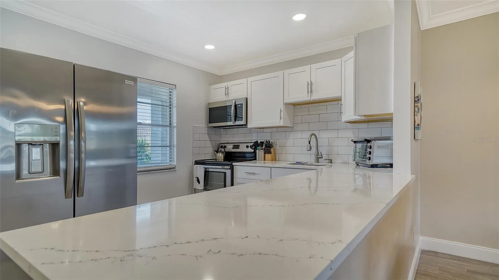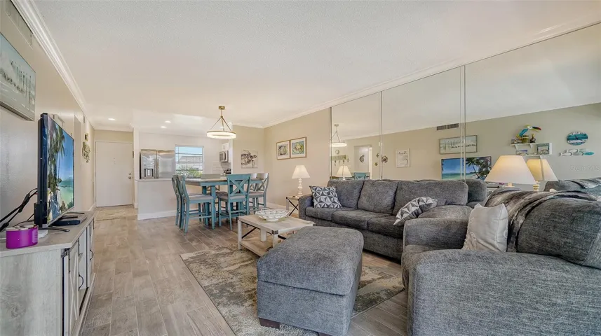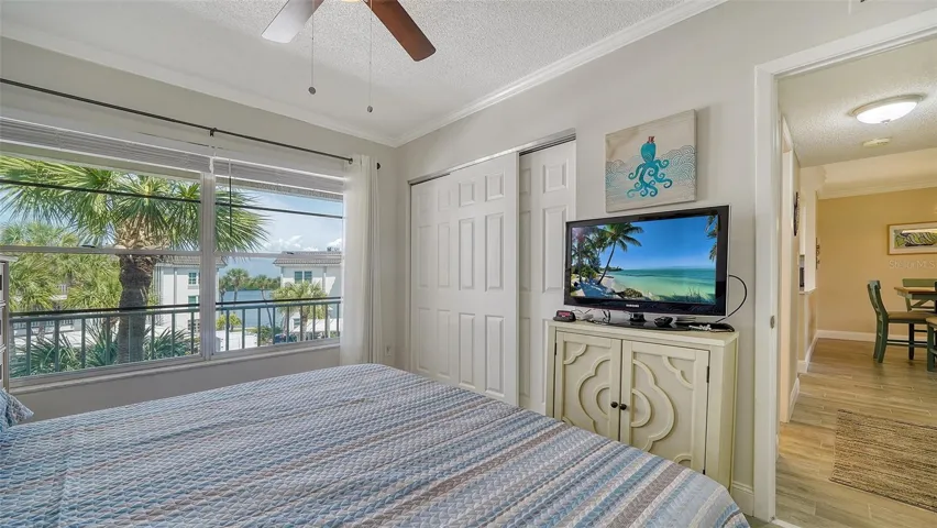 PENTHOUSE UNIT!! DEEDED BEACH ACCESS DIRECTLY ACROSS THE STREET!! New roof 2025! Top-floor, end-unit living with sparkling water views and everyday coastal ease. This light-filled 2-bed/2-bath residence opens with a reimagined, wall-removed kitchen that flows into the living area—finished with wood-look tile throughout and sleek quartz counters—so the view is the star from the moment you walk in. Step onto the balcony for morning coffee over the canal and watch boats drift by, then head out for a beach day via the community’s deeded Gulf access just across Gulf of Mexico Drive. Back at home, a brand-new roof adds peace of mind, while the gated Longboat Harbour lifestyle brings resort-style pools overlooking the bay, a clubhouse fitness center, and the option to keep a boat at the community docks (subject to availability). Practical perks include a covered, assigned carport and a nearby storage room. Minutes to the dining and boutiques of St. Armands and the charm of Anna Maria, this bright, updated condo delivers the waterfront Longboat Key experience—canal-front setting, water views, and deeded beach access—all in one.