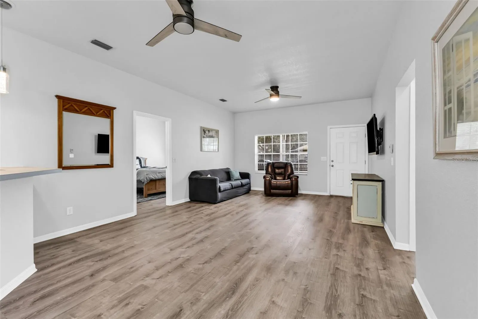 Step inside to discover luxury vinyl flooring throughout, a freshly painted interior, and new lighting fixtures that add a modern touch to every room. The spacious kitchen features stainless steel appliances and flows seamlessly into the main living area — perfect for relaxing or entertaining. Enjoy your morning coffee or evening breeze from the screen-enclosed porch, complete with a ceiling fan for year-round comfort.