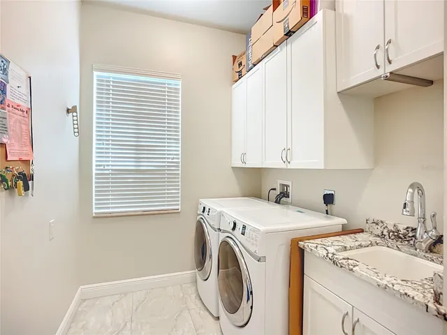 This home features three spacious bedrooms and two full bathrooms, designed for comfortable Florida living. Enjoy expansive waterfront views from the living room, kitchen, and primary suite, creating a bright, open atmosphere filled with natural light. The open-concept floor plan flows seamlessly into a gourmet kitchen with granite countertops, stainless steel appliances, and custom cabinetry—perfect for entertaining and everyday living.