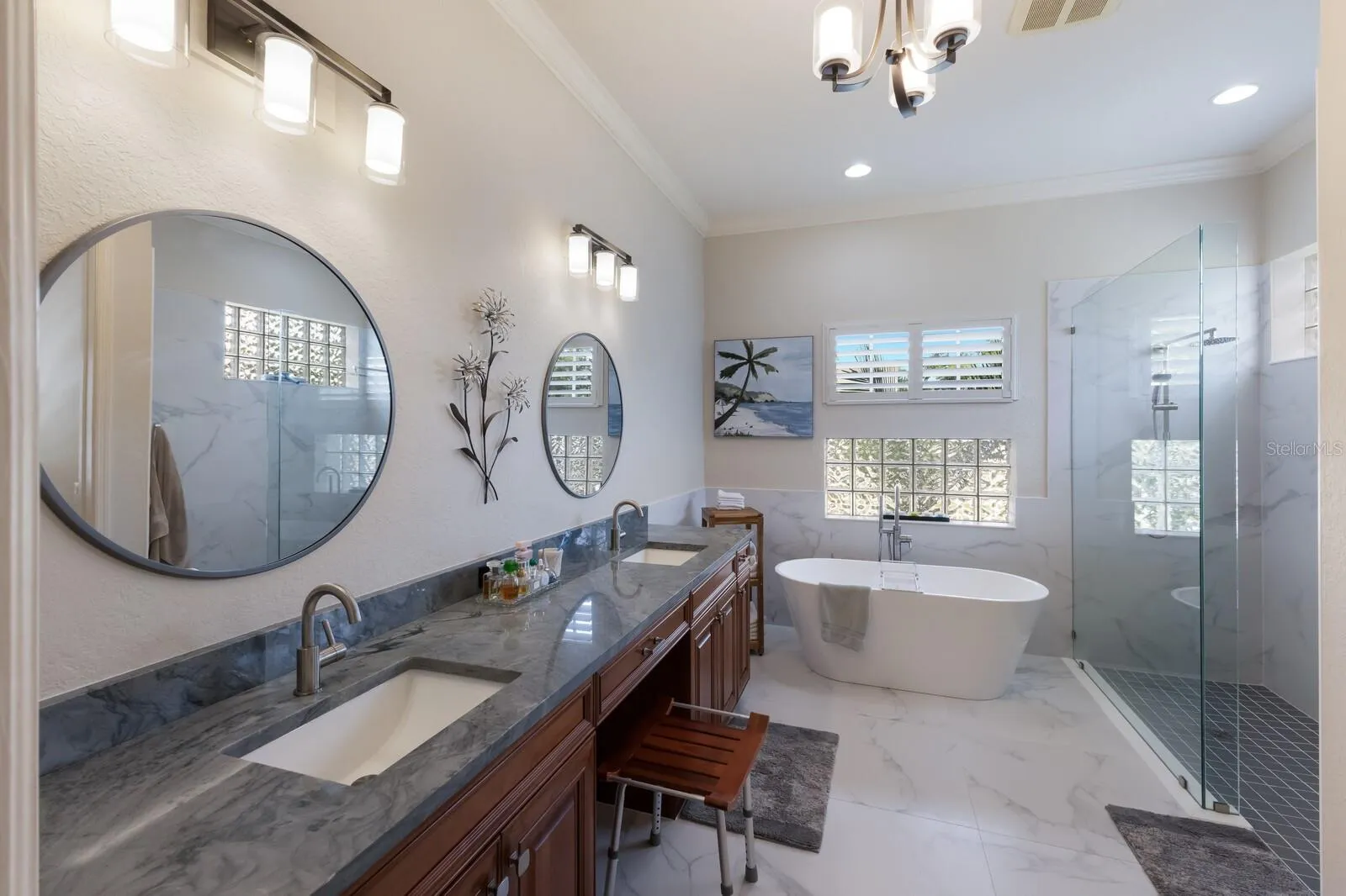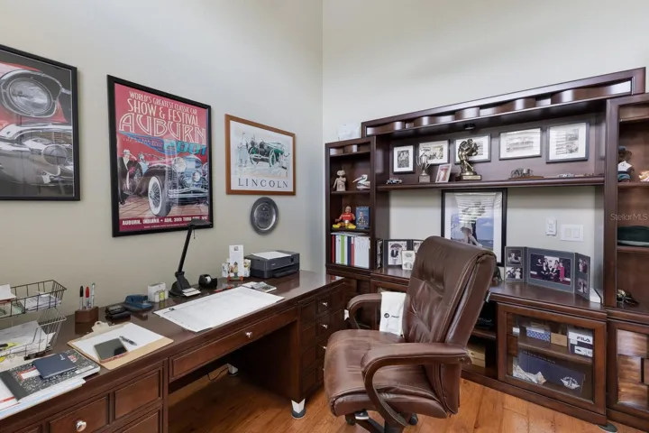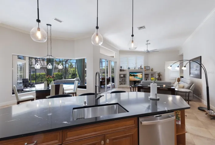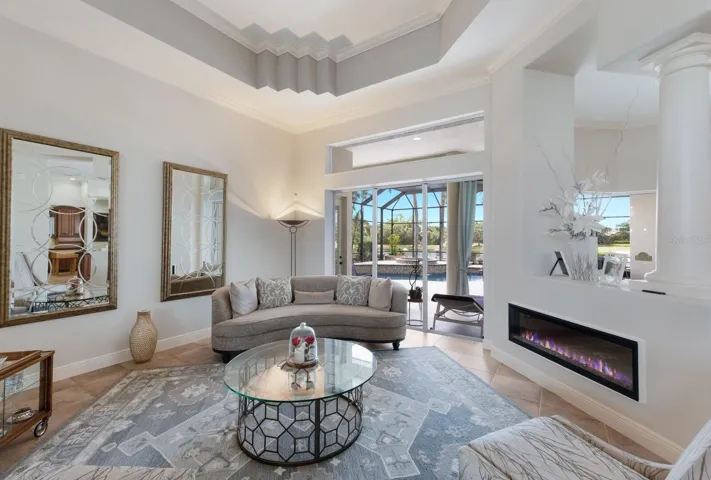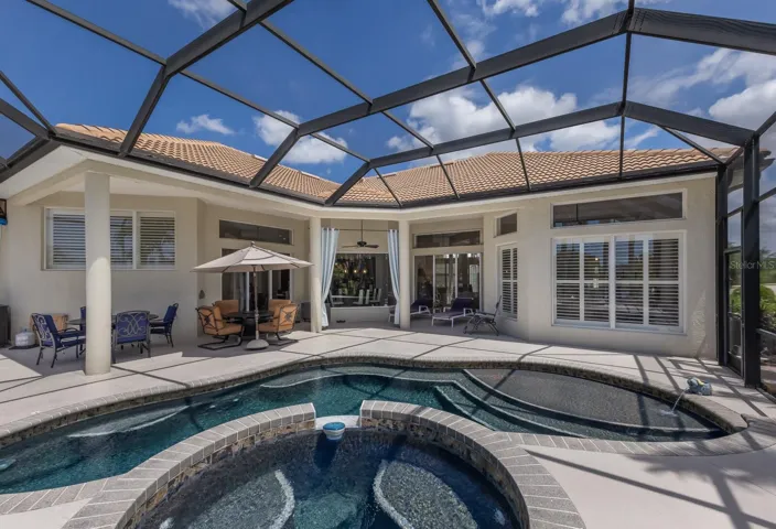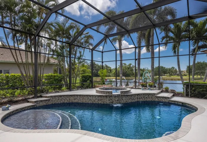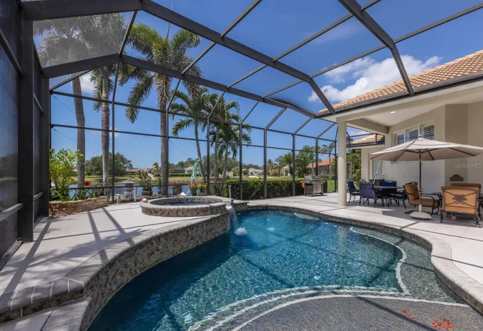 Serenity, sophistication, and sweeping lakefront views converge in this exceptional estate, located within the prestigious gated community of Red Hawk Reserve. Set on a premium homesite and thoughtfully crafted for both elegant living and effortless entertaining, this 3,586 sq. ft. residence offers four bedrooms, three bathrooms, a dedicated office, a flexible studio or fifth bedroom, and an expansive 400+ sq. ft. bonus room. From the moment you step inside, you’re welcomed by soaring ceilings, abundant natural light, and timeless architectural details that create a sense of openness and grandeur. At the heart of the home lies a gourmet kitchen, beautifully appointed with designer cabinetry, a custom wood range hood, granite countertops, under-cabinet lighting, a center island with breakfast bar, and high-end stainless steel appliances. Adjacent to the kitchen, a cozy dinette framed by a sweeping aquarium window offers the perfect setting to enjoy your morning coffee while overlooking the pool and tranquil lake. The primary suite is a private retreat, complete with serene views, dual custom walk-in closets with upgraded built-ins, and a spa-inspired en-suite bath featuring a Roman shower, soaking tub, and separate vanities. Step outside to your resort-style oasis—an expansive wrap-around lanai with brick pavers, a heated pool and spa, and lush tropical landscaping, all set against the backdrop of shimmering lake views. An oversized three-car garage offers generous built-in storage and overhead racks. At the same time, the community provides added peace of mind with a virtual guard gate, high-resolution security, and reclaimed water irrigation. Located within an A-rated school district and just minutes from the world-renowned Siesta Key Beach, this remarkable residence embodies the essence of Florida luxury living.