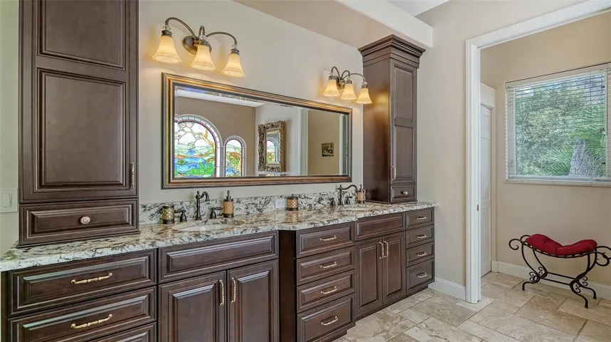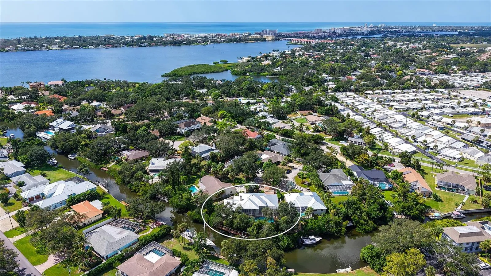 Waterfront Luxury Living at its Finest! Enjoy direct boat access to Gulf through Midnight Pass with no bridges to navigate under. This stunning canal-front estate offers the perfect blend of elegance, comfort, and functionality, all just minutes from Siesta Key and the best of Sarasota living. A private iron gate and paver driveway lead to a secluded courtyard, setting the tone for the luxurious living that awaits inside. Upon entering through etched glass double doors, you’re greeted by soaring tray ceilings, custom architectural details, and a spacious open floor plan designed for both everyday relaxation and seamless entertainment. The great room is anchored by a striking European-style carved wood fireplace with a wine-making motif, creating a cozy focal point. Adjacent to the living area, the gourmet kitchen is a chef’s dream, featuring solid wood cabinetry, a copper sink, and a large granite bar with seating for six, plus an induction cooktop and separate oven. A butler’s pantry and an eat-in area overlooking the pool add convenience and charm. For more formal occasions, the dining room provides a view of the private courtyard. Designed with privacy in mind, the home boasts a split-floor plan, including a spacious owner’s suite with a newly renovated spa-inspired bathroom, complete with a custom tile walk-in shower, soaking tub, dual sinks with granite countertops, and built-in cabinetry. The walk-in closet offers custom organization, and the suite has direct access to the pool area through sliding glass doors. The second bedroom is handicap accessible with its own ensuite bathroom and pool access, while the third bedroom, currently used as a den, offers a Murphy bed and its own ensuite bathroom. The expansive living space extends outdoors through French doors leading to the oversized pool and spa, surrounded by lush tropical landscaping and offering stunning water views. A boater’s paradise, the private 65’ dock has room for two vessels with one in the 13,000 lb. lift and space for another boat or yacht along the dock, complete with shore power, freshwater, and night lighting. The canal has direct access to the Intracoastal Waterway. Additional features include tile and engineered hardwood floors, a large two-car garage with built-in storage, updated AC units, a new metal roof (2023), dual tankless water heaters, and modern pool equipment. This property is fully equipped with outdoor electrical, irrigation, and a dog run with fencing, ensuring comfort and convenience for all. Located in a coveted West of Trail neighborhood, this home offers unparalleled proximity to Siesta Key, Gulf Gate dining and shopping, and downtown Sarasota and Venice. This home sits on high ground and has never sustained any storm damage or flooding. This one-of-a-kind property truly offers the best of waterfront living—don’t miss the opportunity to make it yours!