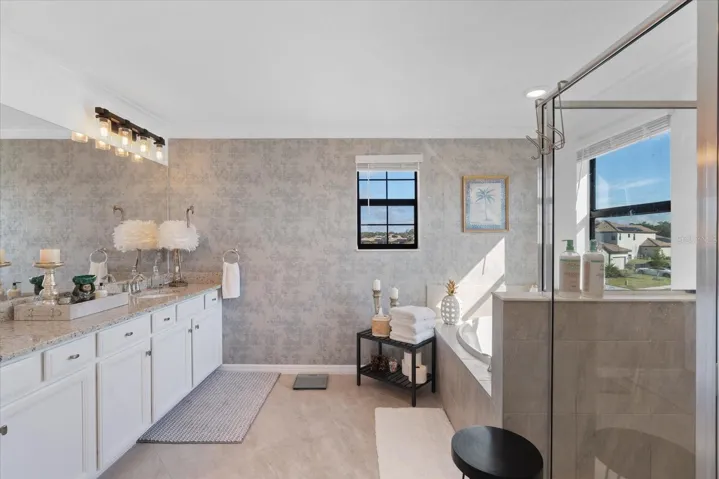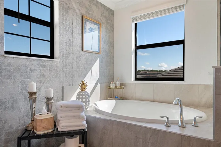 Step outside to your private backyard oasis featuring a massive 35×25 heated pool and spa with a large sun-shelf — all overlooking serene preserve and lake views. Whether you’re entertaining, swimming, or simply relaxing with a drink in hand, this outdoor space is hard to beat.