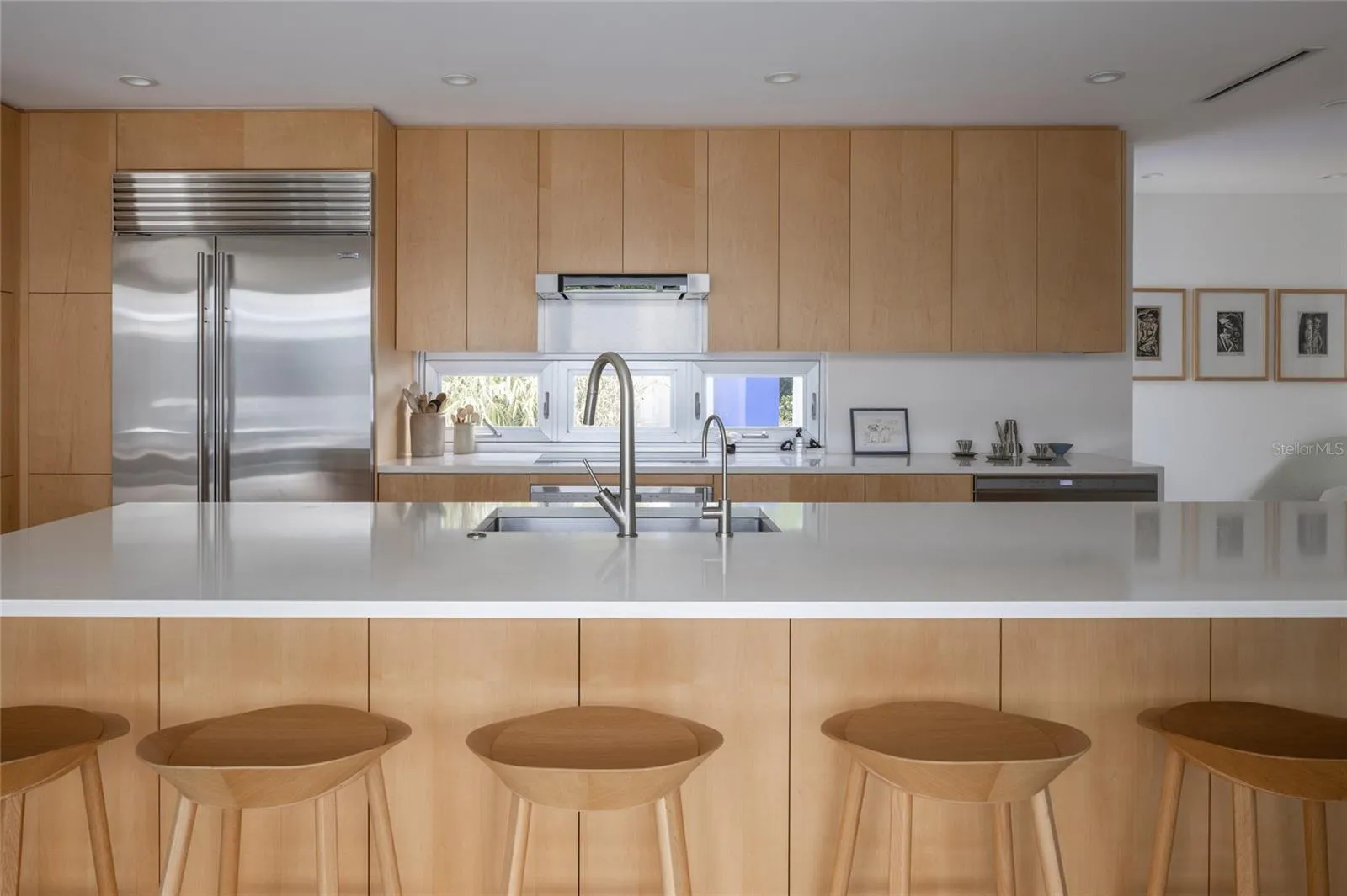 In the coveted enclave of Lido Shores, a community celebrated for its architectural innovation, this striking modern residence stands as a true work of art by renowned architect Guy Peterson. A symphony of clean lines, open volumes, and coastal serenity, the home captures the very essence of Sarasota’s modernist heritage while embodying an effortless sense of luxury and calm. Walls of glass dissolve boundaries between interior and exterior, flooding every space with natural light and blurring the line between home and horizon. In 2022, a thoughtful transformation elevated both form and function, introducing a new dining area, a versatile family room that doubles as a library, enhanced storage, and a dedicated laundry space, all executed with Peterson’s signature restraint and precision. Outdoors, the living experience unfolds across three distinct retreats, each its own expression of tranquility. A Japanese-inspired front courtyard with a water feature welcomes guests with meditative grace. At the center, a lap pool and heated spa anchor the heart of the home, surrounded by lush gardens, a Wolf outdoor grill, and generous lounge areas ideal for entertaining. A third, private garden extends from the primary suite, offering an intimate sanctuary designed for reflection and repose. Inside, refined simplicity defines every space. The open-concept plan seamlessly connects the main living area, dining room, and gourmet kitchen, outfitted with Wolf and Sub-Zero appliances, custom maple cabinetry, and white quartz surfaces that echo the home’s modern aesthetic. The primary suite, with direct access to its secluded courtyard, features a bespoke closet system and serene ambiance that completes this private retreat. Set within a community offering exclusive access to a private Gulf-front beach, this residence transcends the notion of home. It is an architectural statement, an emblem of modern Sarasota design and a rare opportunity to own a piece of its enduring legacy.