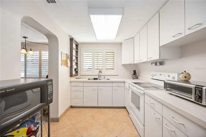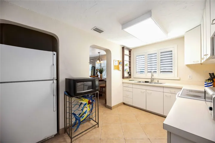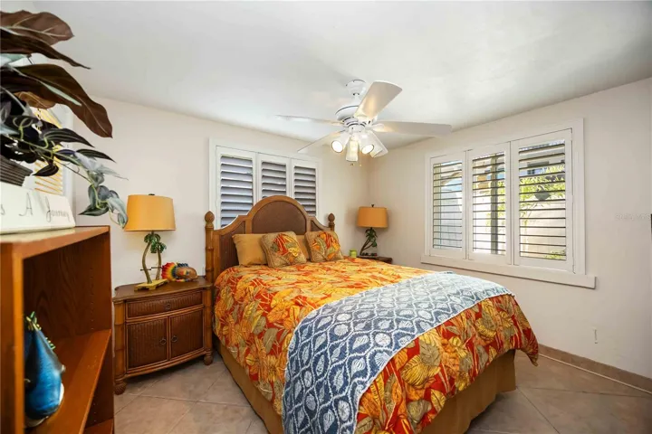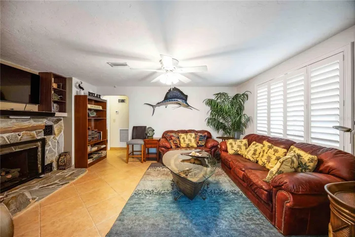 The guest cottage mirrors the same attention to detail with roughly 1,500 square feet of combined indoor and outdoor space. It includes two bedrooms, a full bath, a welcoming living room with leather seating, a fireplace, a 50-inch TV, and a full kitchen with modern appliances. Plantation shutters, tiled floors, and tasteful décor enhance its charm, offering both comfort and style for visiting guests or extended stays.