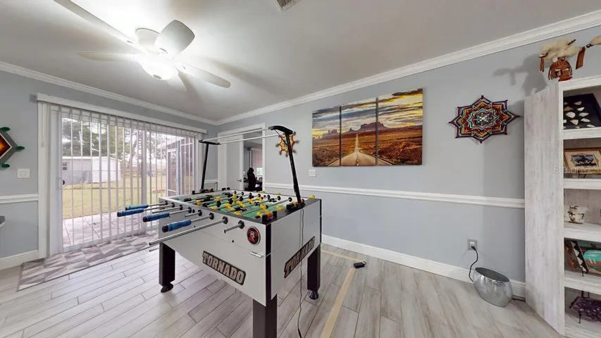 **YOU’VE FOUND THE ONE!** Central Water and Sewer and in the the very heart of North Port proper!! Almost like NEW: a 2020 ROOF, 2017 IMPACT WINDOWS, 2020 A/C, BEAUTIFULLY REMODELED, ALL NEW appliances in 2023, NEW garage door 2024, a TESLA charging station, an OPEN FLOOR PLAN, ALL TILE FLOORS, CORNER LOT, TROPICAL YARD, 2 CAR GARAGE, JOCKEY CLUB POOL and COURTS, and a GREAT LOCATION. This home is located in the Jockey Club, which has many community amenites including a heated pool, clubhouse, tennis, outdoor grilling area, and MORE!! The home has an open floor plan, large rooms, wood-look tile floors throughout, a spacious kitchen, and a screened lanai. As you drive up to the home you’ll love the mature palm trees lining the oversized corner lot. As you enter the home you’ll walk into the bright and airy living room opening to the kitchen and dining area all with crown molding and chair rails. The open kitchen has luxurious leathered granite counter tops, solid wood cabinets with over counter lighting, an elegant tile back splash, an island with seating for 3, and a 4 piece stainless steel appliance set including a refrigerator, dishwasher, range, microwave as well as a single-basin undermount stainless steel sink with a garbage disposal. The spacious Master Bedroom has a large walk-in closet and an elegant en-suite bathroom. The master bathroom has an updated vanity, tiled walk-in shower with a built-in shower seat. The large 2nd bedroom easily accomodates a king-size bed with furniture. The spacious 3rd bedroom is off the dining area and could also be used as a den, game room, office or hobby room and has a sliding door accessing the covered and screened lanai. The 2nd bathroom has a tub with shower, tiled surround, and an updated vanity. Off the back porch is a majestic oak tree, with the tropical plantings, and a partially fenced yard. So many things to mention…all that is missing is YOU!!!! See this unique home today!!