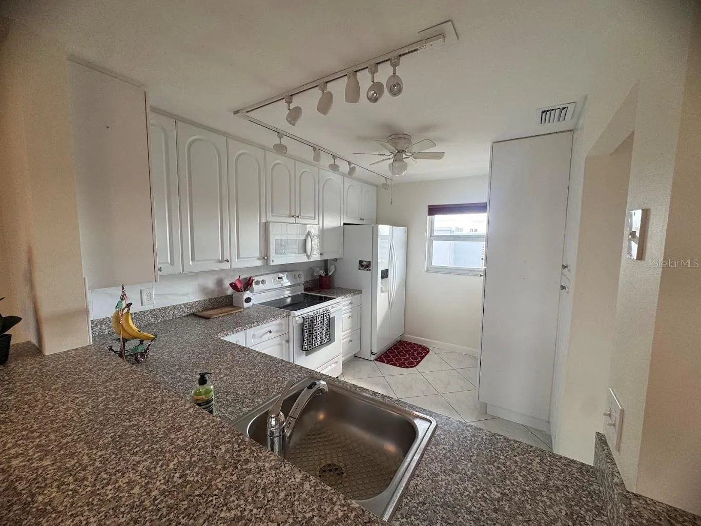 Welcome home! Experience serene golf course living in this beautifully maintained 5th-floor condo at Ironwood! Step inside and you’ll instantly notice the seamless flow of tile flooring throughout—no carpet anywhere! This bright and cheerful home is filled with natural light and showcases custom kitchen cabinetry, perfect for the home chef. Enjoy peace of mind with hurricane-impact windows and hurricane canvas protection for the sliding doors on the balcony allowing you to relax during all seasons of Florida living. The large balcony is the perfect spot to take in the fabulous golf course views with morning coffee or an evening Tottie. The bathrooms have been updated, and the ensuite master bathroom has a step-in shower for easy entry without the tripping hazard of a high walled tub. Every detail has been lovingly cared for, creating a move-in-ready retreat that radiates comfort and style. Located just minutes to shopping, dining, and the area’s stunning Gulf beaches, this is Florida living at its finest! Like to golf or get involved in social events? This is the perfect location as there is pay as you play golf, and a calendar of social events to keep you as involved as you would like to be. Set up your showing today!