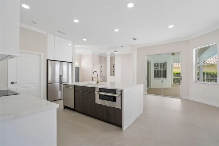 Enjoy a beautifully reimagined gourmet kitchen with sleek modern cabinetry, premium appliances, and designer touches that make cooking a joy. The open living and dining areas flow seamlessly to a peaceful lanai — ideal for entertaining or simply unwinding after a sunny Florida day.