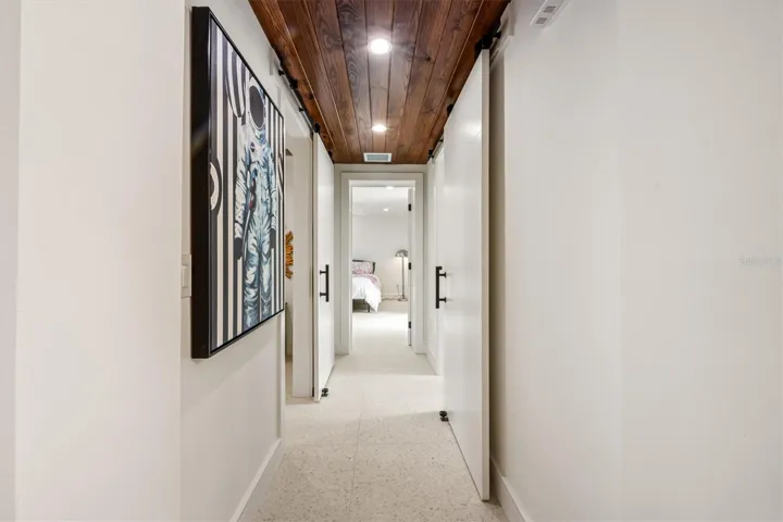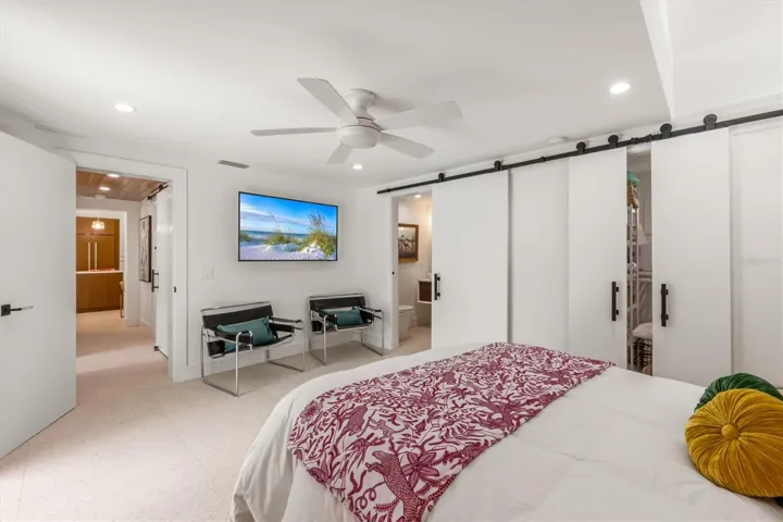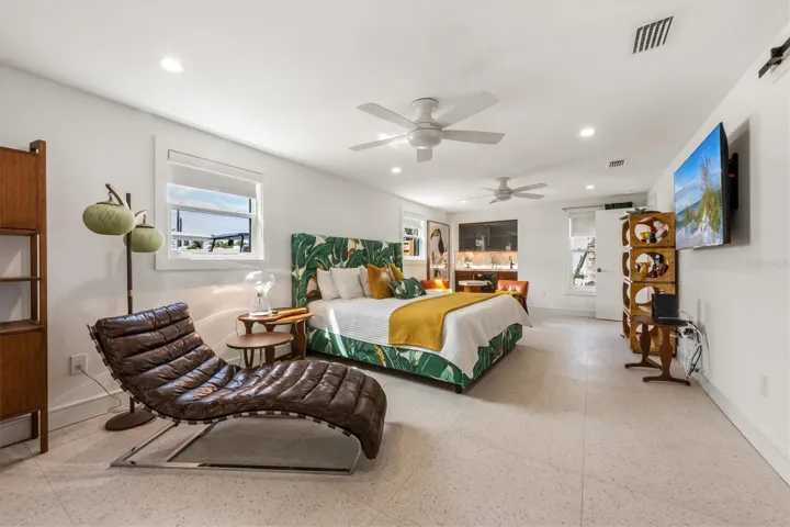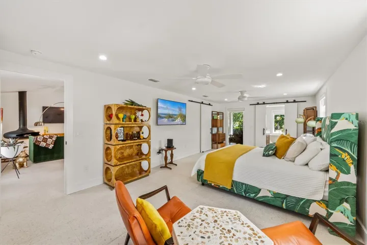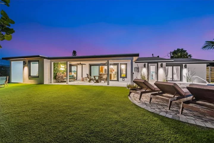 Chic Art Deco Canalfront Retreat! Escape to paradise in this stunning 3 bedroom, 3 bathroom home perfectly blending vibrant Art Deco Palm Springs style with tropical serenity, this residence offers an unforgettable island experience. Step into a world of bold colors, terrazzo tiles, sleek lines, and retro glamour and a brand new remodel built by Moss. The open-concept living space flows seamlessly, filled with natural light, vibrant energy, and showcases a floating fireplace designed for both wood or decorative candles, serves as a striking focal point. The gourmet kitchen boasts modern appliances, Eurotech cabinetry, stylish finishes and a pot filler. Perfect for crafting meals to enjoy by the sparkling, private, heated pool. The primary bedroom suite is a true sanctuary, featuring a wet bar with a refrigerator, ample storage, and an elegant lighted alabaster countertop. Enjoy the luxury of a walk-in closet and a fabulous en-suite bath with a soaking tub, double vanities, and a large walk-in shower with direct access to the open-air outdoor shower and pool area. On the opposite side of the home, a spacious second bedroom offers an en-suite bath and sliders leading out to the outdoors. The third bedroom, located just across the hall from a convenient pool bath, includes a washer/dryer and an exterior door, perfect for guests enjoying the pool. Newly constructed with everything from under-house plumbing to the new electric service, insulation, walls, and floors, this home has been designed for the ultimate comfort and convenience. Outside, enjoy tropical landscaping by Lancaster Design, featuring pavers and turf, along with a sandy area. The brand-new Trex deck, with water and electricity, is perfect for relaxing by the canal, and the 10,000 lb. boat lift provides easy access to the water for boating adventures. This home is being sold turnkey furnished, with a custom golf cart and a 2022 Carolina Skiff included!! The canalfront location offers direct water access for kayaking, paddleboarding, or simply enjoying the serene views. Located just minutes from the Gulf beaches, local dining, and vibrant island attractions, this home is a perfect blend of style, comfort, and coastal living!