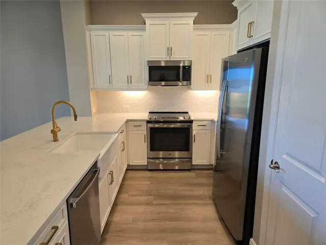 This amazing open concept Cypress floor plan by Neal Communities is move-in ready and located in the highly desired Kings Gate Community, a resort-style 55+ very active adult gated community. The Cypress floor plan features 1,395 square feet of living space with 2 bedrooms and 2 full bathrooms, and a den with a 2-car garage with epoxy floors. This home has spacious rooms with 10’ tall ceilings, impact windows and doors, and cordless faux wood blinds are included. The kitchen features designer cabinets and quartz countertops, back splash, pantry, and GE stainless steel appliances. Master bath has a walk-in shower & walk-in closets. Smart Home Technology is included. The exterior lanai is screened in and under truss. The exterior of the home features carefree living at its finest, including a full landscape package and, irrigation system. Kings Gate features the newly remodeled Lion’s Den Restaurant that is open to the public, a challenging golf course, numerous planned activities, tennis, pickleball, pool and spa, gym, lawn bowling & more. Lawn maintenance, irrigation water, pressure washing, cable, roof replacement, exterior paint & more are included in HOA. Don’t miss out on your chance to live in a highly upgraded quality-built home in Kings Gate that is run and operated by the Homeowners. NO CDD!!!!