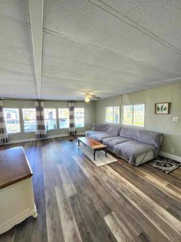 **ALL AGES** LAND OWNED and PET FRIENDLY! Over 1200 square feet of Living space in this 3 Bedroom, 2 Bath Manufactured Home on an oversized corner lot in the Floridana community. Spacious Living and Dining areas. Nicely updated Shaker style kitchen cabinets with custom dry bar. Roomy Master Bedroom fits a king size bed, has plenty of closets and an ensuite bath. Light and airy enclosed Florida Room to relax with a cup of coffee and a good book; OR a Bonus space with private entrance, great for Office, crafts, work out room, or a forth sleeping area for extra guests!…You decide. Huge inside Laundry room and lots of storage in this unit. Roof, 2015; A/C 2023. Completely fenced back yard with covered parking, and plenty of space for grilling and gathering of family and friends. An 8×12 detached shed completes this piece of Paradise. You own the land, no Lot rent. 20 minutes to Sarasota-Bradenton Int’l Airport. Convenient to shopping, restaurants, the Arts and everything in Bradenton/Sarasota. Bring all offers!