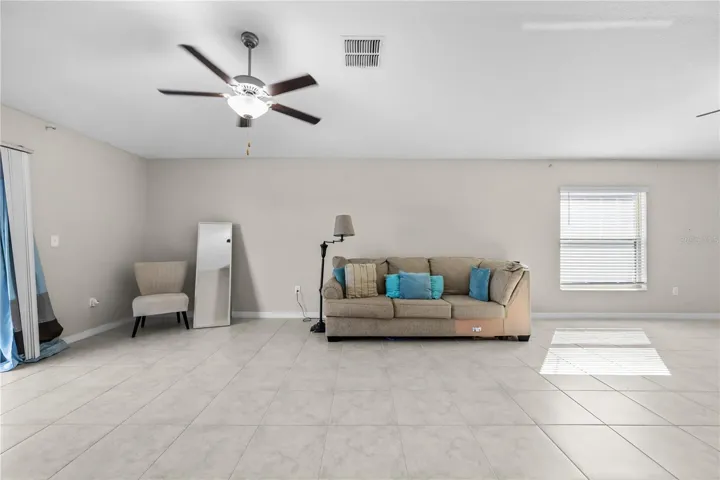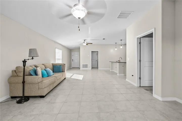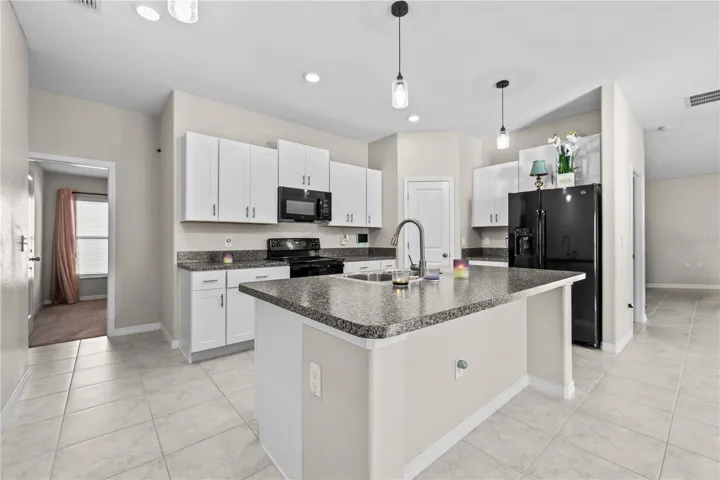 Welcome home to peace and nature! This beautiful 4-bedroom, 2-bath, 2-car garage home offers a quiet retreat backing up to a large, county-owned parcel—no backyard neighbors! Step inside and enjoy the open-concept layout, perfect for modern living. The kitchen features white cabinetry, ample storage space, and sleek black appliances, all overlooking the dining area and spacious great room. Sliding glass doors lead to your private backyard, ideal for relaxing or entertaining. The split floor plan provides privacy for the primary suite, which includes a large walk-in closet and a bright ensuite bathroom with dual sinks, a private water closet, and a walk-in shower. Each of the additional bedrooms offers generous space for family, guests, or a home office. Located in a peaceful setting yet close to shopping, dining, and major highways, this move-in-ready home combines comfort and convenience in one perfect package.