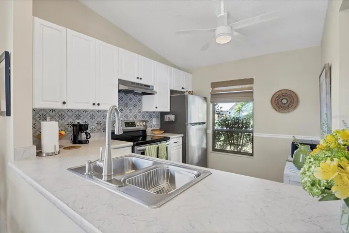 Why buy a home that needs costly and time-consuming renovations — replacing outdated flooring, appliances, cabinets, and fixtures — just to make it livable? You don’t have to! Here’s your chance to own a FULLY UPDATED, MOVE-IN ready END-UNIT villa for less than the price of a fixer-upper. Skip the stress and start enjoying the Florida lifestyle right away! Located in a non-flood zone (X) just minutes from Nokomis Beach — this is a must-see opportunity for anyone ready to escape the cold and enjoy beautiful Florida winters! Nestled in a peaceful cul-de-sac within the pet-friendly 55+ community of Curry Cove, this charming property offers the perfect blend of privacy, comfort, tranquility and convenience. Enjoy maintenance-free living surrounded by lush tropical palms, a spacious yard, and covered private parking. Relax and unwind in the south-facing screened lanai, which opens to an oversized, fully fenced courtyard — ideal for gardening, entertaining, or grilling with friends and family. COMPLETELY REMODELED in 2021, this open concept villa is ready to enjoy this coming winter season. Highlights include: open kitchen with all-new cabinetry, countertops & appliances, new bathroom with updated shower, vanity, lighting, & brushed nickel fixtures, engineered hardwood flooring throughout with tile in wet areas, NEW ROOF (2023), newer AC system, vaulted ceilings, fans in main living areas & patio, abundant natural light, laundry closet, and ample storage. Centrally located, you’re not only close to the beach, you’ll have easy access to historic downtown Venice, shopping, dining, recreation, and medical facilities. The community offers a heated pool and clubhouse for residents to enjoy as well. Come see what easy Florida living is all about in this stylish, updated, and stress-free villa — with very reasonable HOA fees that cover your yard, roof and exterior maintenance with the added benefit of on-site boat & RV parking. Schedule a private showing today. This one is not to be missed and is one of the lowest priced homes in the area.