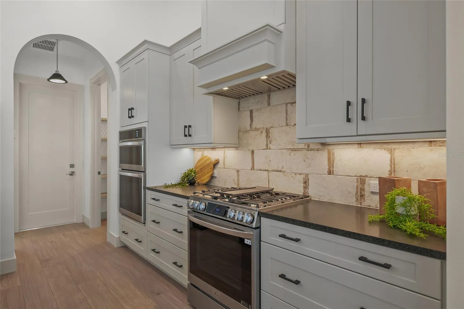 Step inside to an open-concept floor plan that effortlessly unites indoor and outdoor living. At the heart of the home is a gourmet kitchen featuring custom cabinetry, granite countertops, a large island with a Karran granite sink, a walk-in pantry and premium stainless-steel appliances, including an LG gas range and designer hood – perfect for entertaining and everyday living.