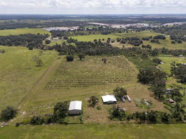 Established Orange Grove & Barndominium. Discover this beautifully maintained Myakka City agricultural property featuring an established citrus grove of approximately 1,500+ orange trees now reaching harvest stage. Nearly all usable land with AG exemption and low taxes. The modern 60×40 barndominium offers approx. 1,000 sq. ft. of living space (1 bed / 3 baths) plus large storage and equipment areas. Property includes two wells, septic, electric, and internet, irrigation across the entire property, along with Kubota tractor, ATV, and attachments. Zoning allows horses, cattle, and farming uses. High and dry for Myakka City with deeded road access and about 15 miles to I-75. Perfect for those seeking a turn-key farmstead or future income-producing grove with modern living convenience or other potential business opportunities.