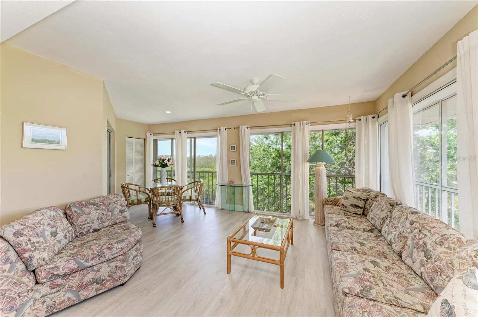 Beautifully maintained turnkey furnished 1,985-square-foot, three-bedroom, two-bath condominium with water view in Perico Bay Village! This spotless, move-in-ready condominium is being sold with all furniture and contents. Perico Bay is a friendly, amenity-rich, vibrant and active waterfront community. There are many socials and fun interactive activities in this maintenance-free community, offering a wonderful lifestyle at a great value for easy living. The largest floor plan in Perico Bay Village and structurally built with cement block from top to bottom, this spacious, light and bright corner top-floor unit provides wildlife and sunset views. Enjoy your morning coffee or watch the birds at sunset in the enclosed Florida room. Plus, the sliding glass doors open to allow a cool breeze for a relaxing atmosphere with a small Lagoon fed by Tampa Bay. Inside you will find a split bedroom floor plan, high vaulted living area ceiling, ceiling fans, kitchen with stainless steel appliances and breakfast bar, open living and dining area, primary bedroom walk-in closet with updated en-suite bath, interior washer and dryer, and extra walk-in storage closet. This home provides plenty of space and privacy for your guest with two additional bedrooms with a guest bath adjacent to the bedrooms. The home is outfitted with many recent updates including a new air conditioner unit and ducts, new primary bathroom with quartz counters, dual sinks and cabinets, updated walk-in tile shower with glass door, new kitchen stove/range and microwave and luxury vinyl flooring. Just off the dining area, enjoy outdoor living on the lanai to barbecue or relax to enjoy the outside cool breeze. The conveniently assigned covered carport parking spot is just outside your front door, plus access to additional guest parking. There are plenty of options to stay healthy and active in this community and enjoy the beautiful Florida outdoors. Perico Bay Club offers miles of recreational trails, a bird sanctuary, heated community pool near the condominium unit and heated Olympic-size community pool with lanes, an active clubhouse with many social events, fitness center, four lighted tennis courts, pickleball courts, shuffleboard, and direct water access paddleboard and kayak launch with storage and more. This well-maintained exclusive enclave of homes is also gated and staffed with a personal guard for extra security and privacy. Your condominium fees include exterior maintenance, cable, internet, water, sewer and trash. No age restrictions. Two pets allowed up to a combined weight of 40 pounds. In addition, this property is in a prime location, only minutes from Anna Maria Island and the best beaches, restaurants, shopping, arts and entertainment in the area. Call today to see this slice of paradise.