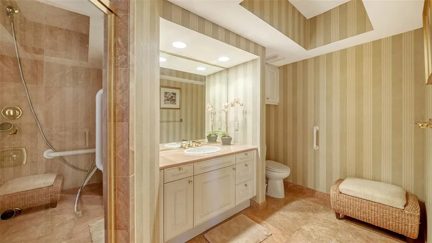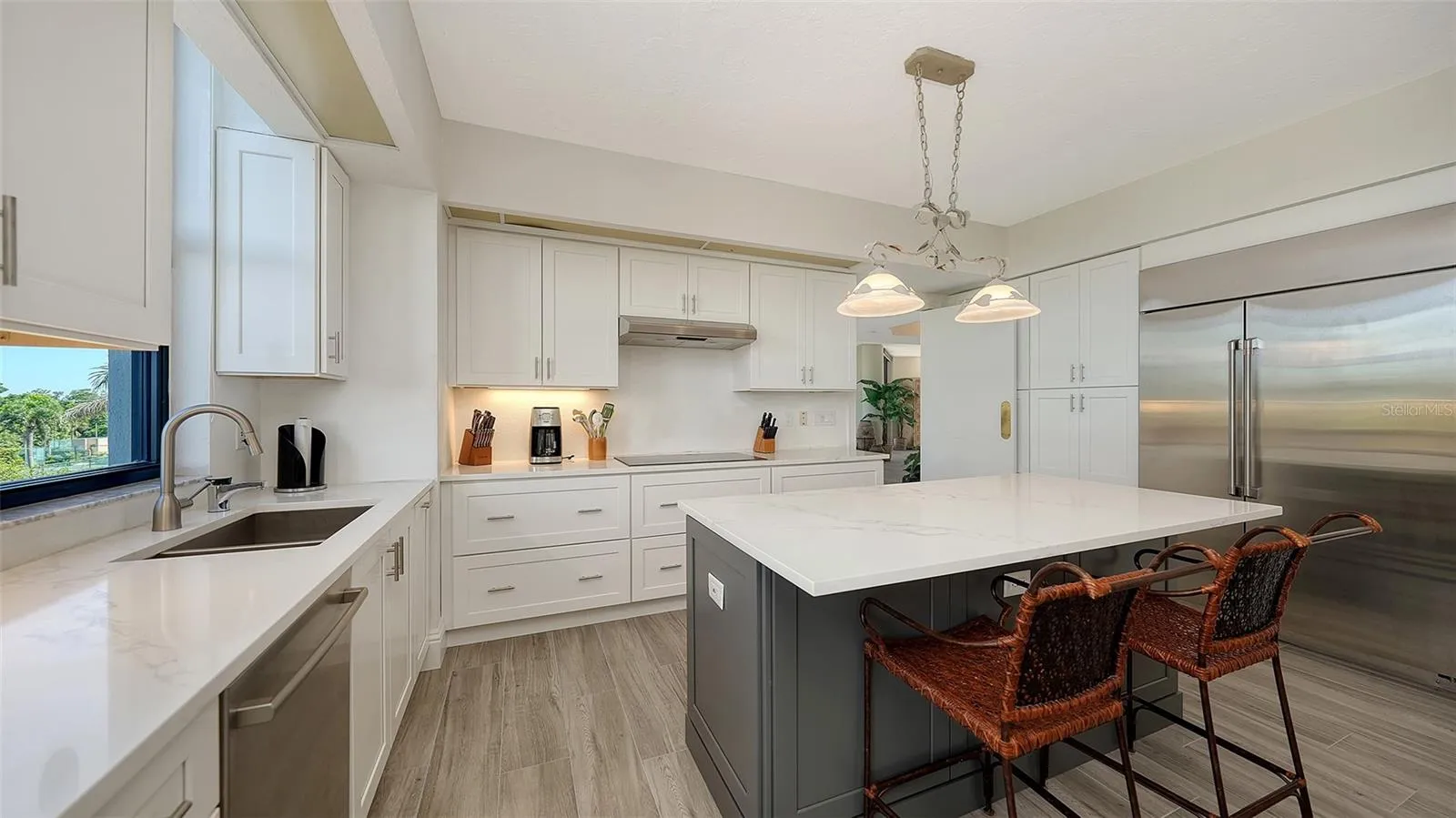 PRICE REDUCED! This beautifully furnished, move-in-ready residence at The Water Club stands among the best values in one of Longboat Key’s most sought-after gulf-front addresses. Featuring two bedrooms plus a den and four baths, this refined coastal retreat offers an ideal combination of comfort, style, and convenience. Spanning 2,965 square feet, this residence welcomes you with new designer flooring, an open-concept layout, and abundant natural light. The spacious 2024 custom kitchen renovation showcases premium white cabinetry, quartz countertops, an island with bar seating, and Cafe’ appliances-perfectly blending modern style with everyday functionality. Enjoy serene views of tropical landscaping and partial ocean views from the private terraces throughout. The primary master suite is a peaceful retreat featuring a spa-inspired bath with soaking tub, bidet, and glass-enclosed shower. The second bedroom also includes its own en-suite bath and terrace, while the open den provides flexible space for work or relaxation. This unit also has a separate controlled climate storage area and convenient ground-level garage parking. At the Water Club, residents enjoy resort-style living with 24-hour gated security, full concierge service, and a 17,000 square foot clubhouse featuring a spa, state-of-the-art fitness center, library, catering kitchen, and grand ballroom. Ideal for entertaining! Outdoors, residents can enjoy the Olympic-sized heated pool and Har-Tru tennis courts. The 600 feet of private white-sand beachfront is perfect for morning walks, sunset views, or relaxed days by the water. All this is just minutes from St. Armands Circle and downtown Sarasota. With its refined updates, including new flooring and a custom kitchen, this move-in-ready residence stands out as one of the best opportunities at The Water Club at Longboat Key.