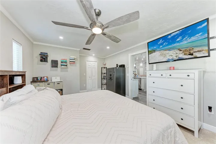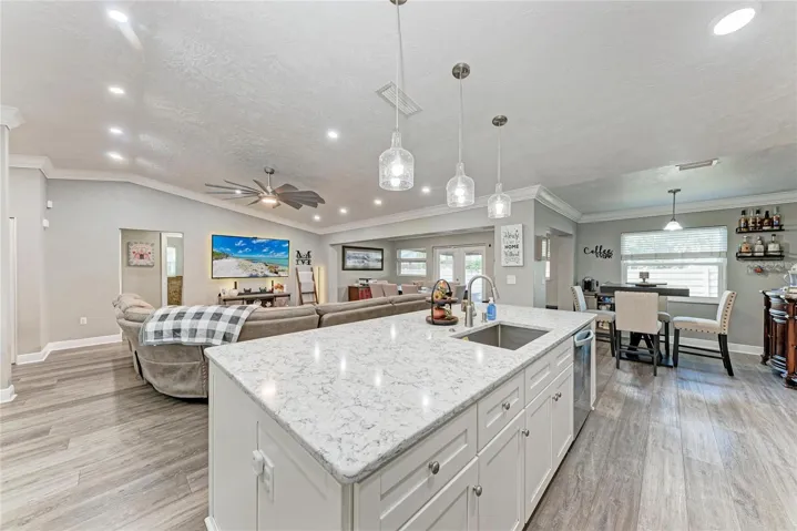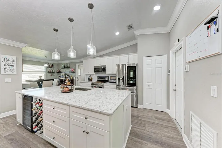 Charming 3-Bedroom Home on Quiet Cul-de-Sac ~ No HOA! ~Welcome to this beautifully updated three-bedroom, two-bathroom home nestled on a peaceful cul-de-sac with no HOA fees and AMAZING curb appeal!!. This inviting residence offers modern comforts and thoughtful upgrades throughout, Including IMPACT WINDOWS, making it move-in ready. Step inside to find luxury vinyl plank flooring flowing through the main living areas, while the cozy bedrooms feature plush carpeting. The recently renovated kitchen and bathrooms add a contemporary touch, with the standout eat-in kitchen showcasing a large island with stunning quartz countertops—perfect for cooking, entertaining, or casual dining. The open-concept floor plan enhances the sense of space and flow throughout the home. The spacious master suite features a generous walk-in closet, offering ample storage. Additional upgrades include a newer garage door opener and epoxy-coated garage flooring for added convenience and style, 2 year old AC and 2 year old ROOF. Enjoy Florida living in the private backyard with a covered lanai, ideal for relaxing or entertaining outdoors. Also included is a handy storage shed. Centrally located just minutes from shopping destinations like Walmart and Publix, Detweillers and a short drive to some of the world’s most beautiful beaches, this home offers the perfect blend of comfort, style, and location