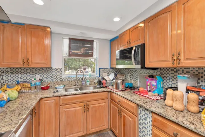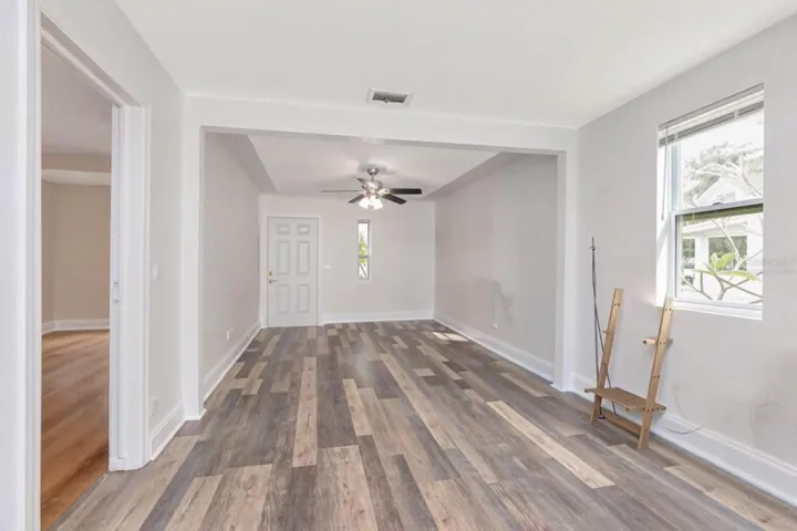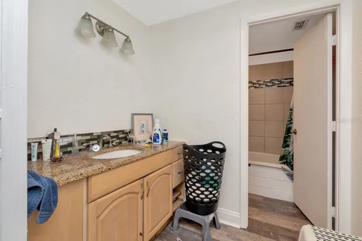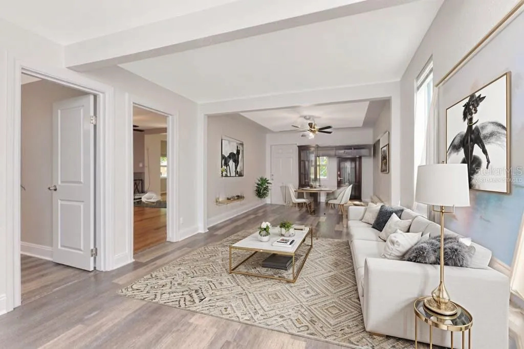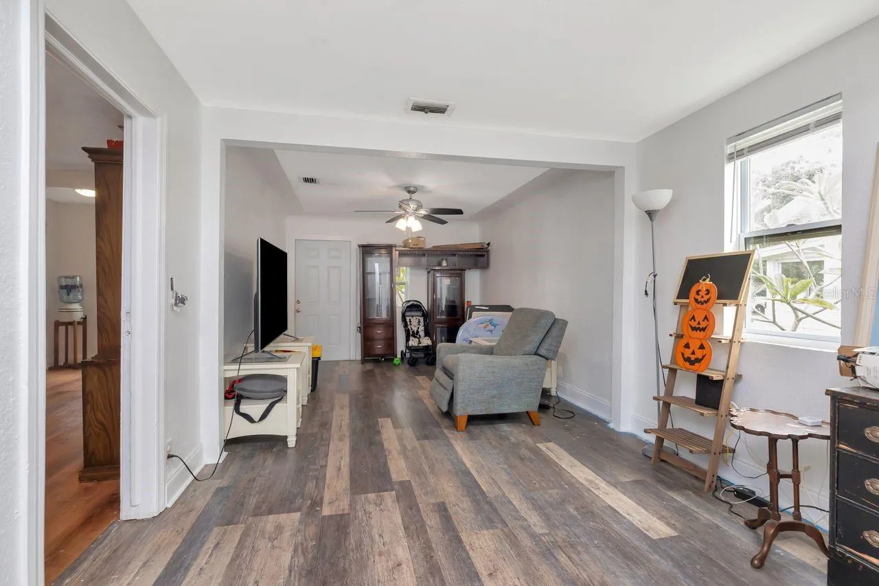 Welcome to this beautifully renovated three bedroom, two bath bungalow in the heart of St. Petersburg. This home offers over 1,500 square feet of thoughtfully updated space with an open, light-filled floor plan. Inside, you’ll immediately notice the modern touches including newer energy-efficient windows, fresh flooring, recessed LED lighting, and tasteful finishes that blend comfort and style. The chef’s kitchen is a highlight featuring stainless steel Whirlpool appliances, granite countertops with an elegant backsplash, a breakfast bar, solid wood cabinetry and ample storage space. The living room is anchored by a charming wood-burning fireplace with original stone detailing, creating a cozy gathering focal point. Sliding doors lead seamlessly to the fenced backyard, a nice outdoor retreat. There’s functional side and back yard access through a double gate to accommodate RV, boat or additional vehicle parking via rear alley. Both bathrooms have been fully renovated. The primary suite includes a sitting area, walk-in closet and an en-suite bath. The secondary bath has a separate shower plus a large vanity with built-in shelving for added convenience.